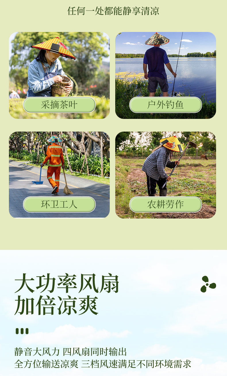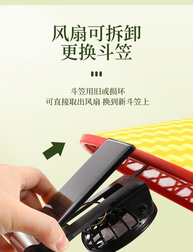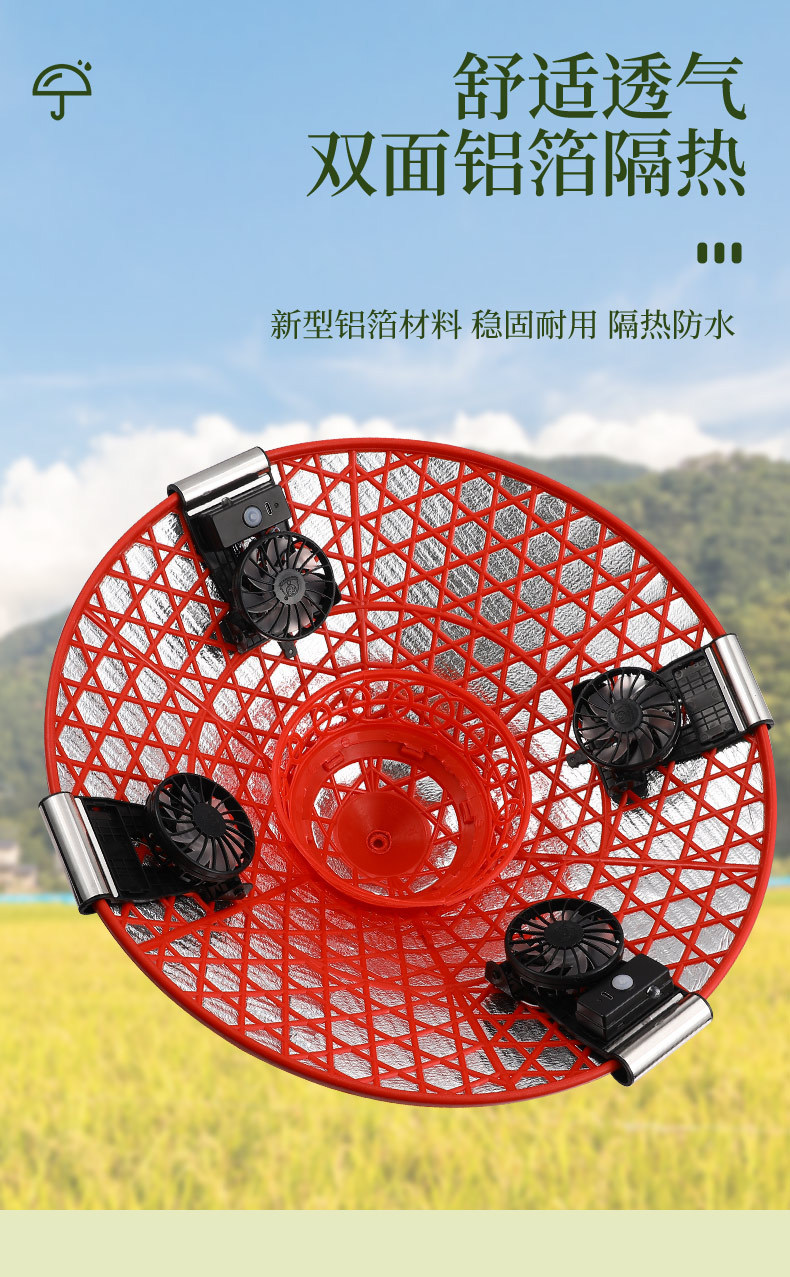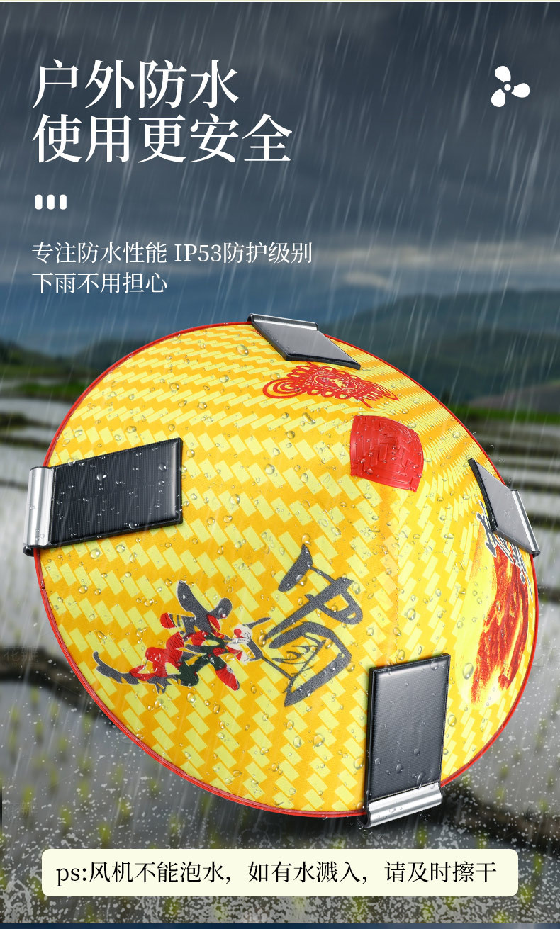 bamboo hat fan (solar + lithium battery)