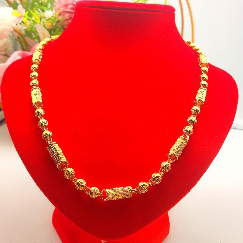 fu character round beads cylinder olive necklace