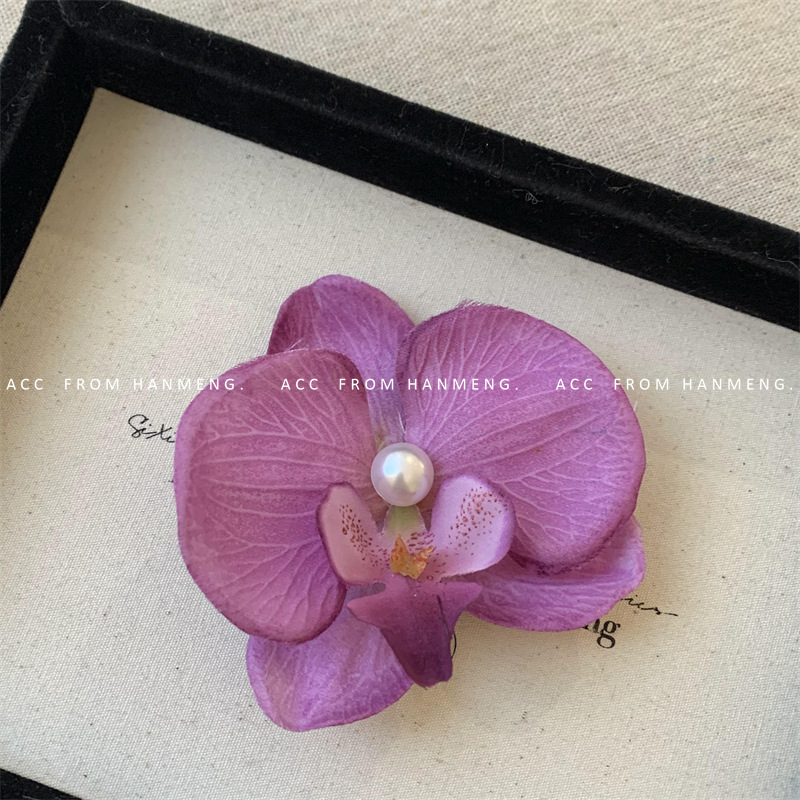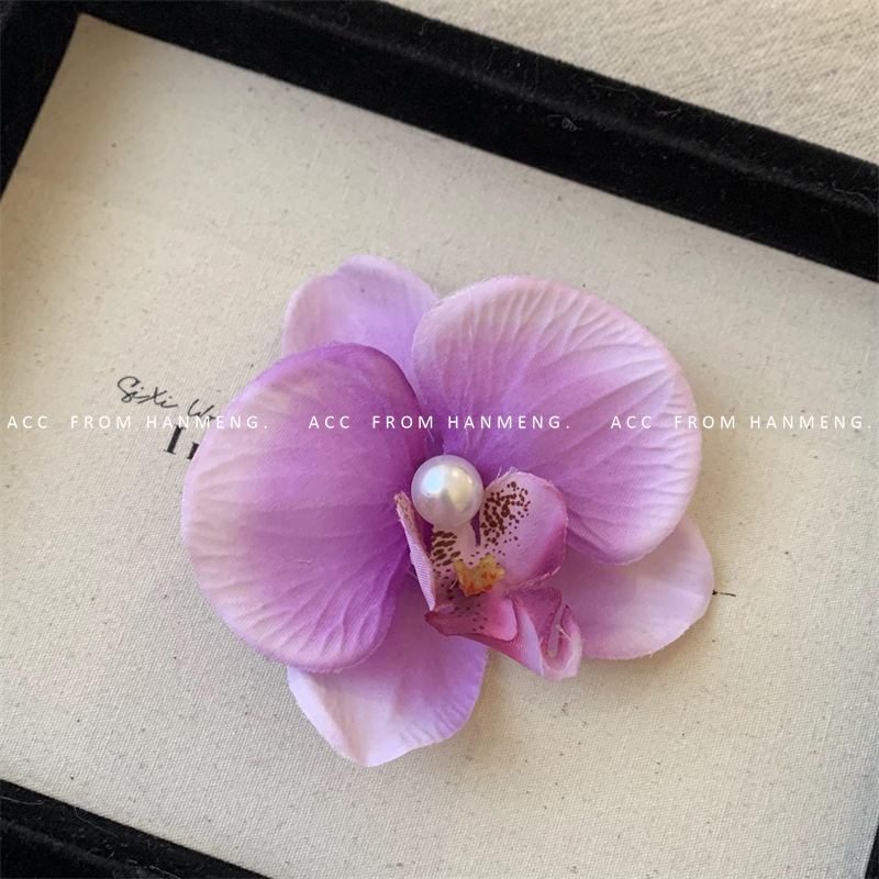 pink-phalaenopsis pearl barrettes (raw silk)
