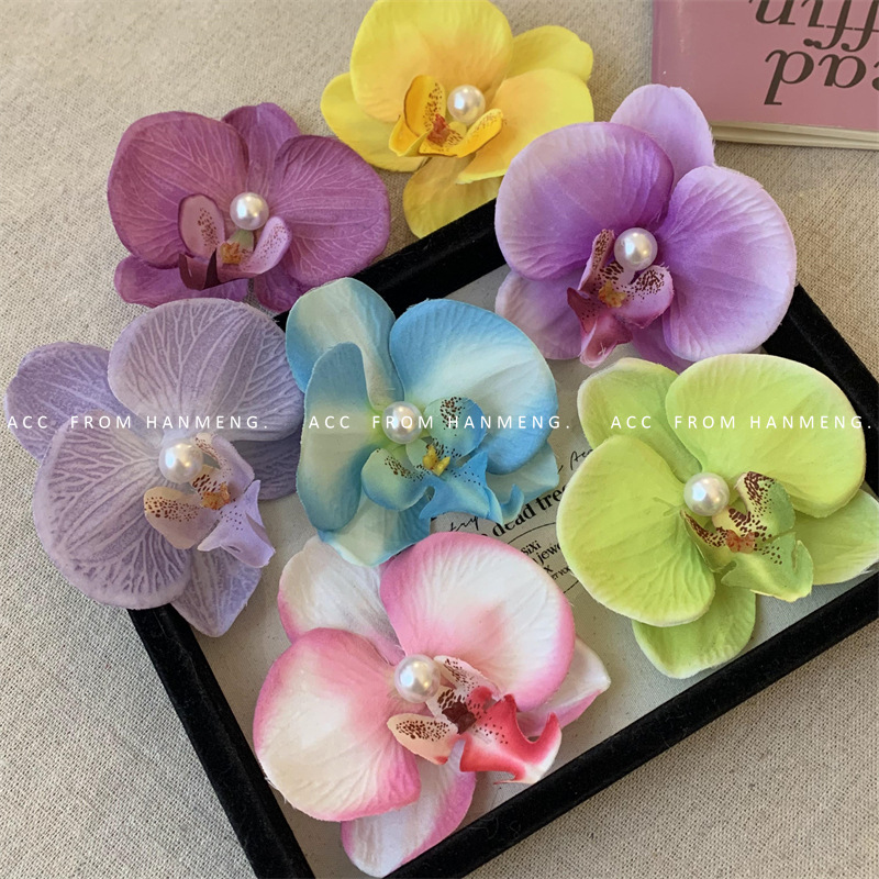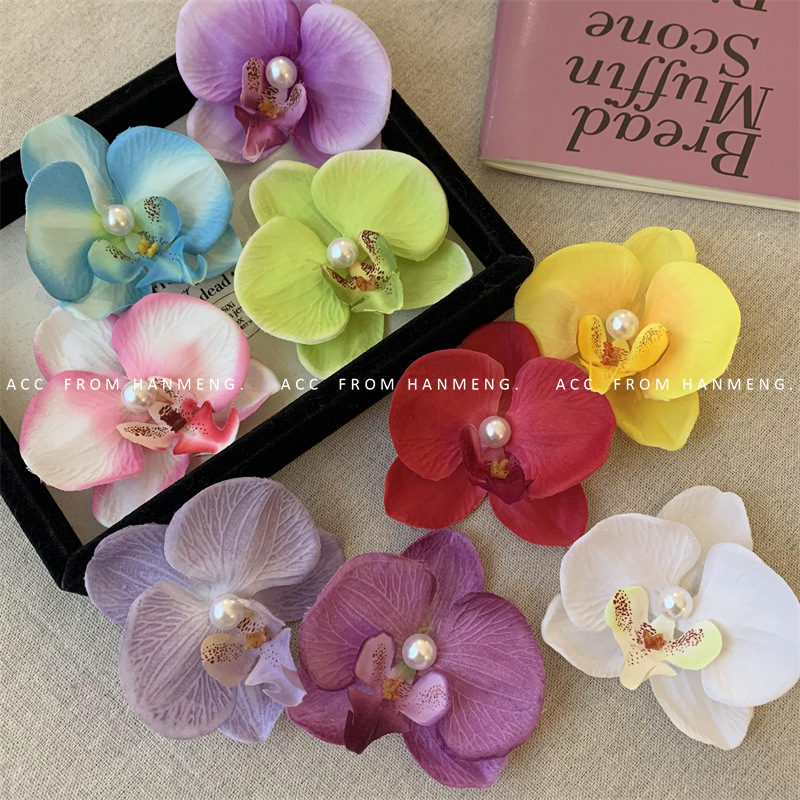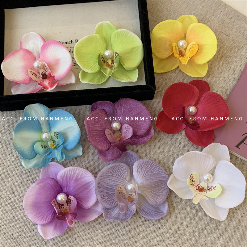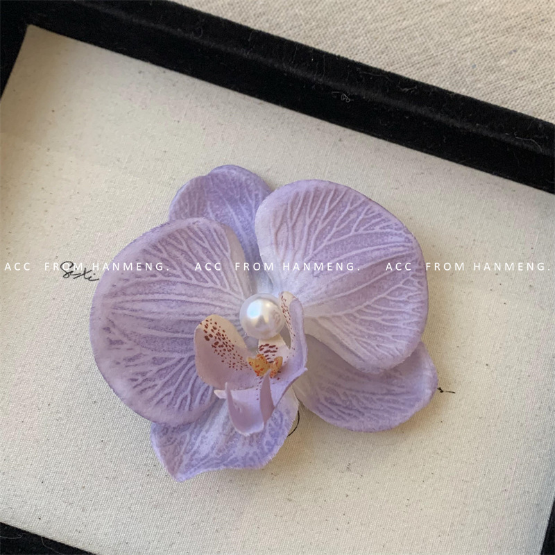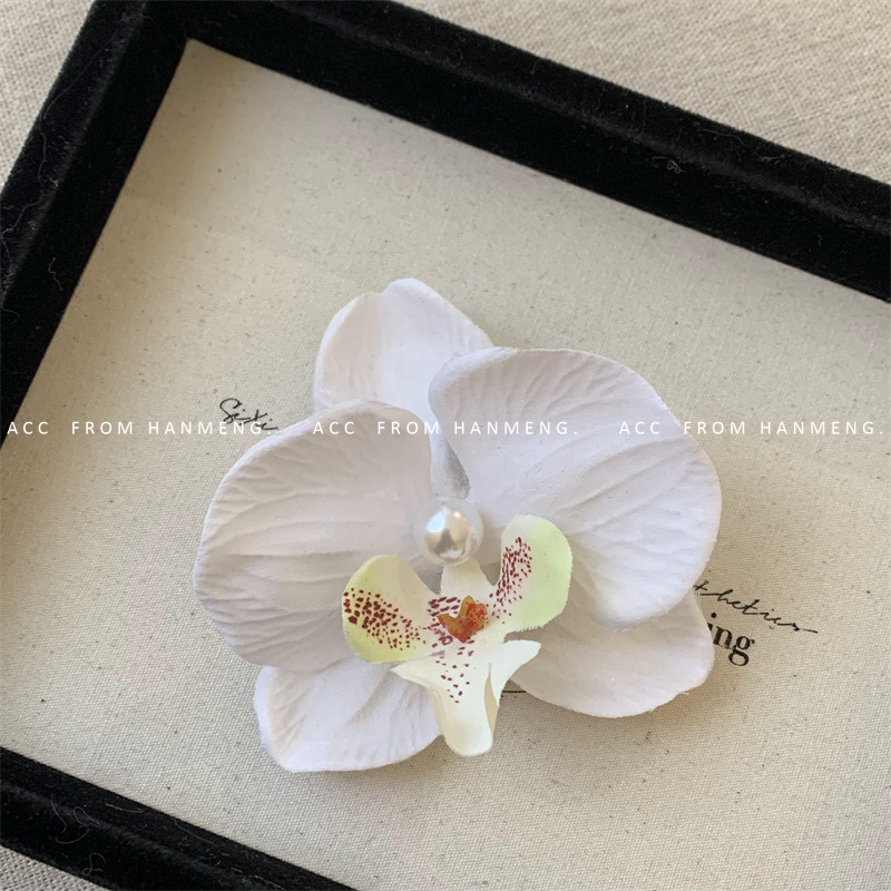 pure white-phalaenopsis pearl barrettes (raw silk)