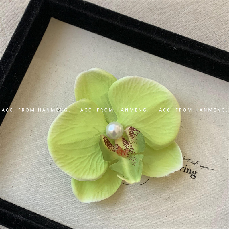 lemon-yellow phalaenopsis pearl barrettes (raw silk)