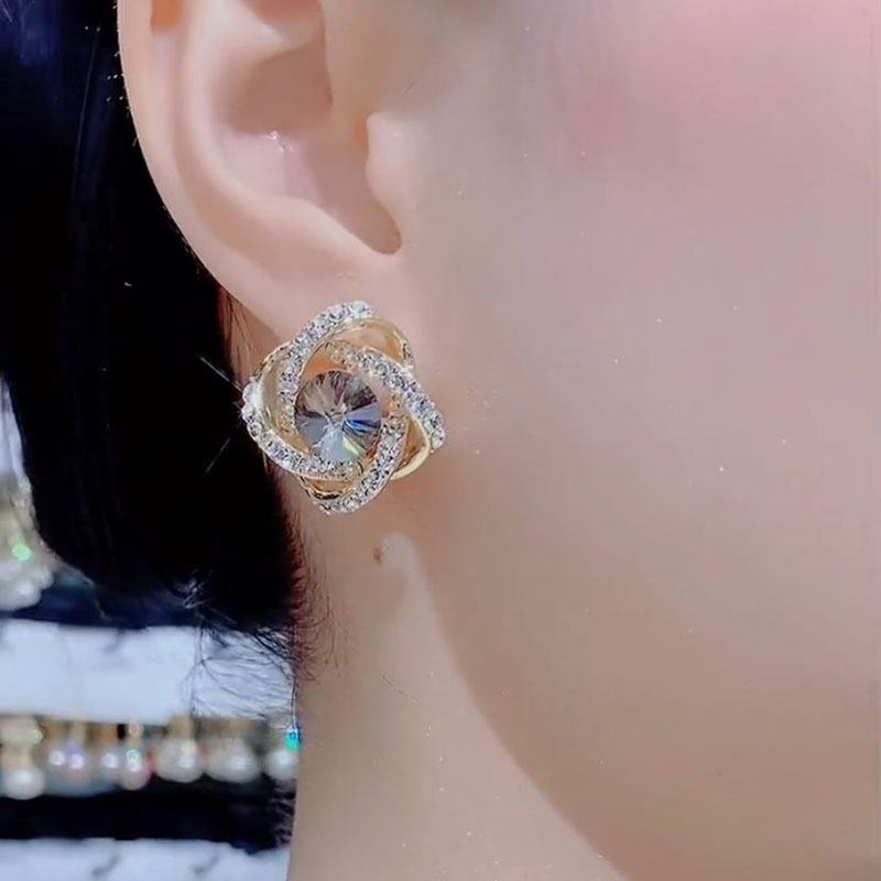 golden winding gray crystal stud earrings