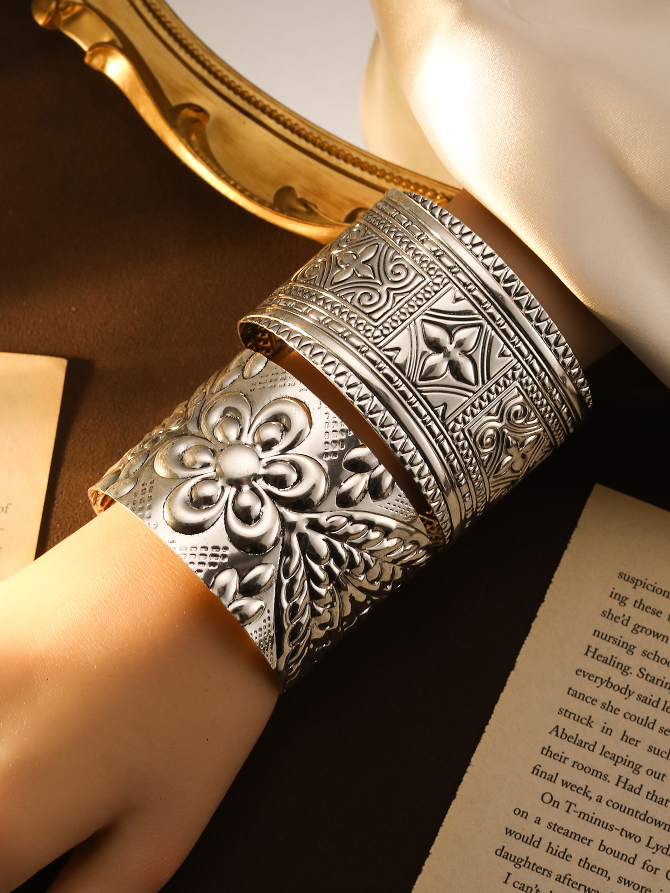 l251-7 carved pattern antique silver