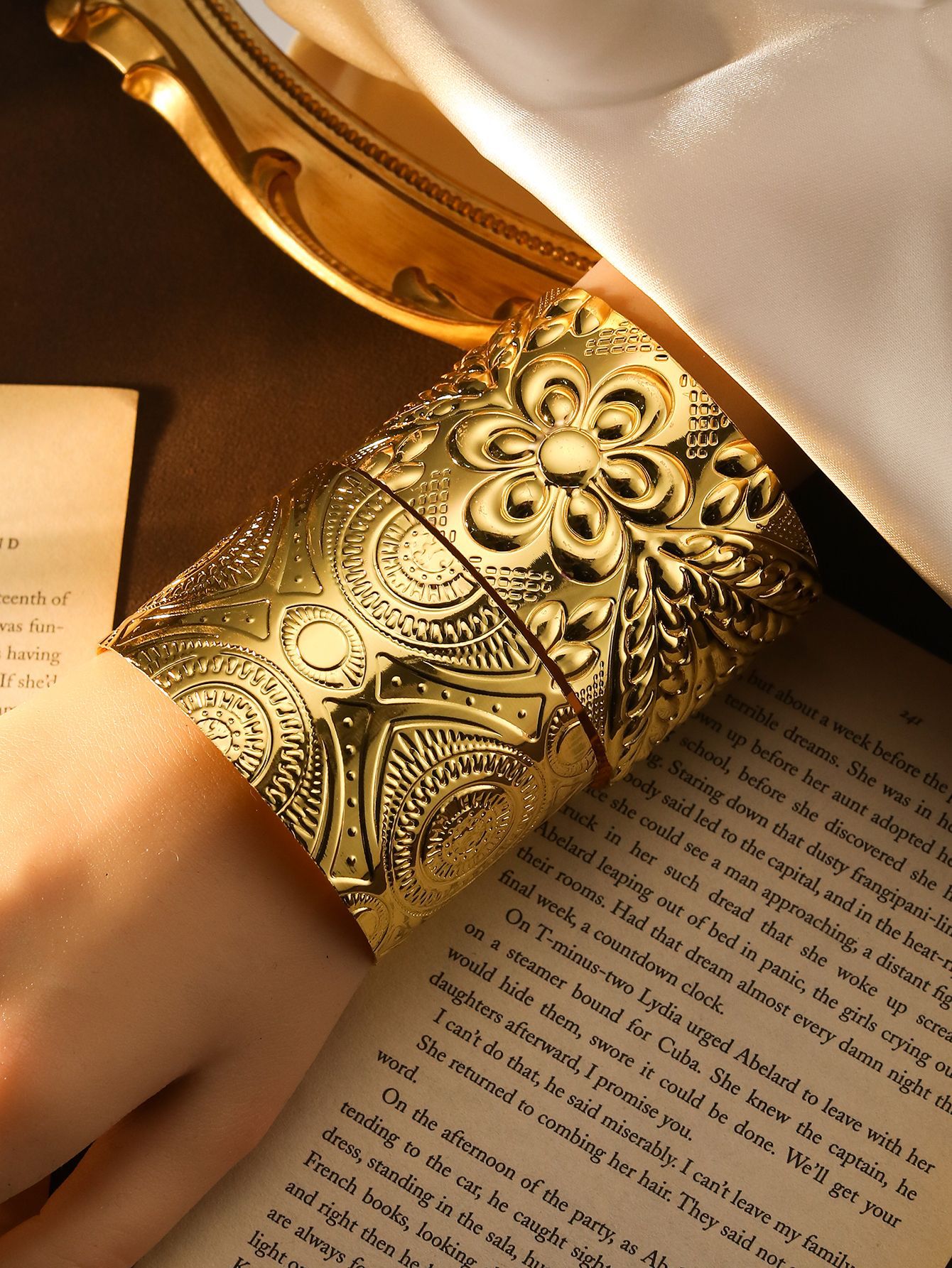 l251 carved flower gold