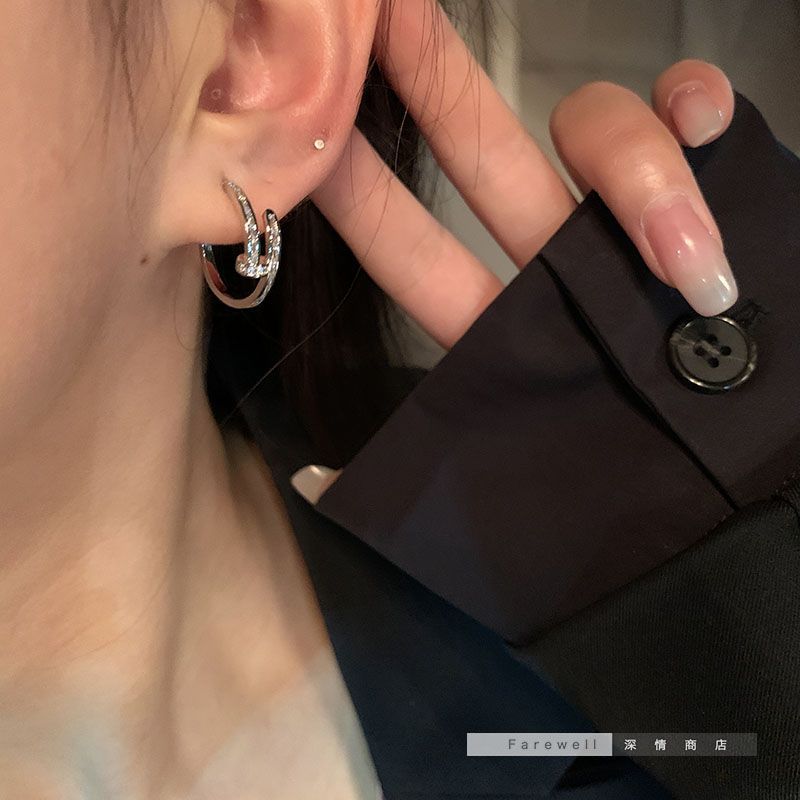 silver nail hoop earrings