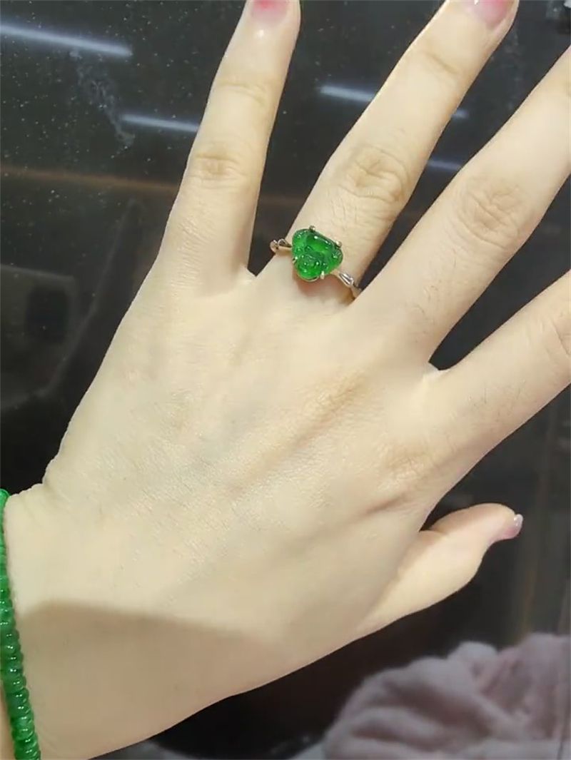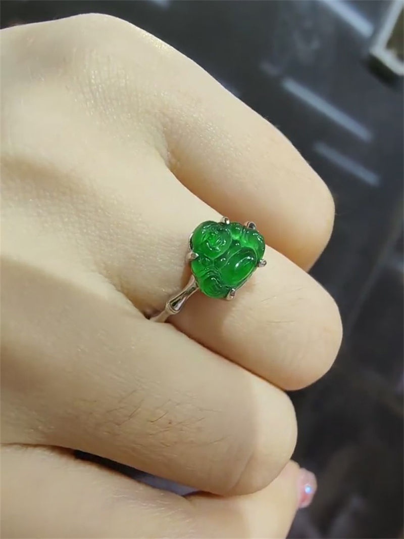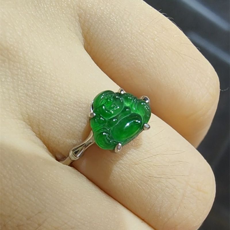 jade buddha statue ring white gold color