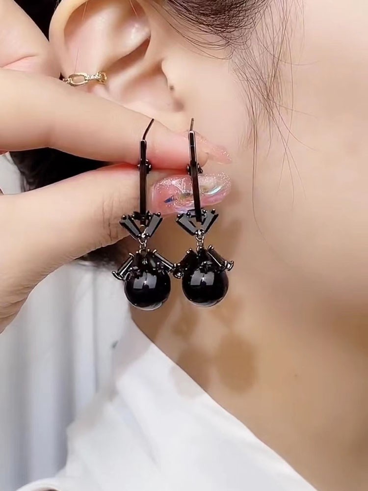 black pearl earrings silver needle