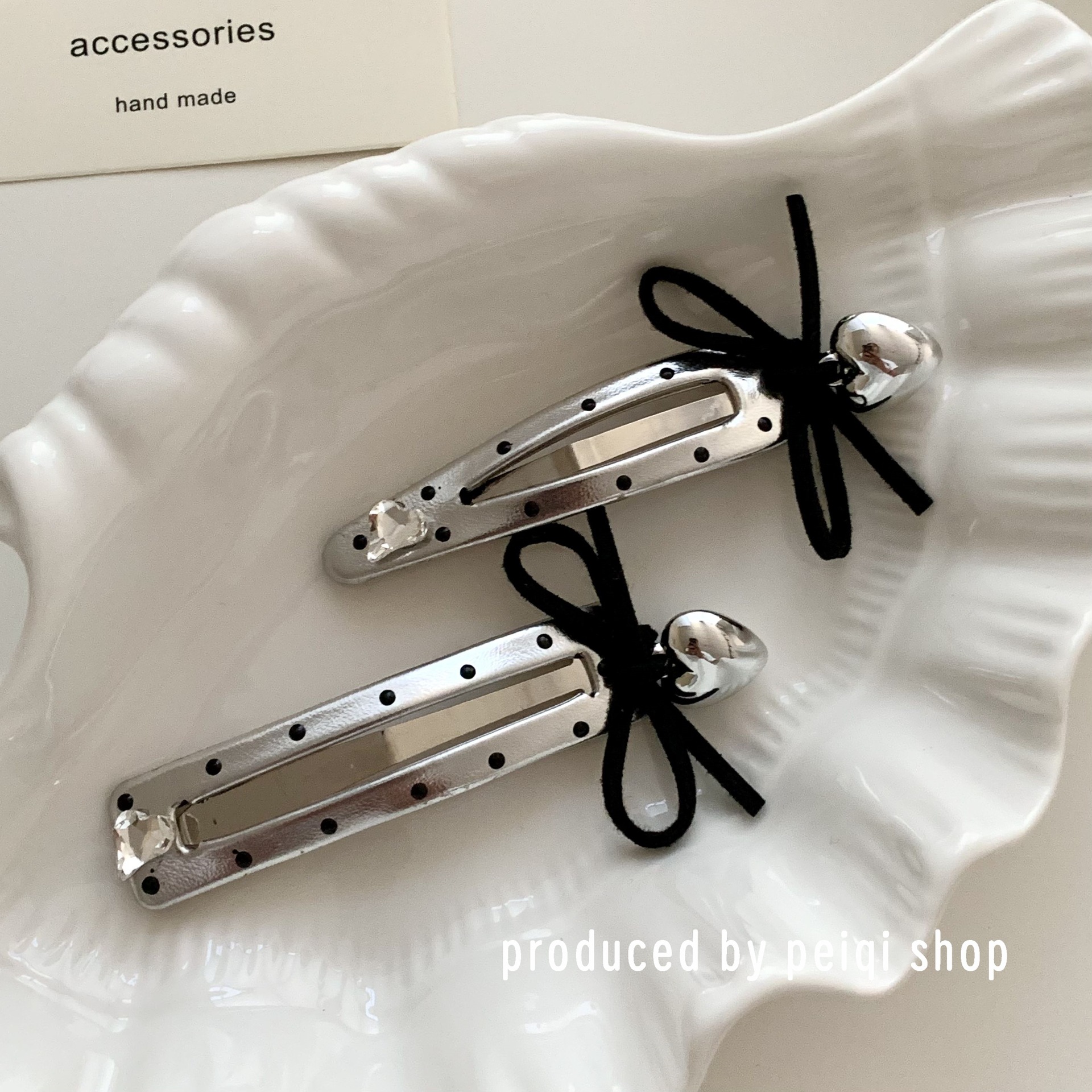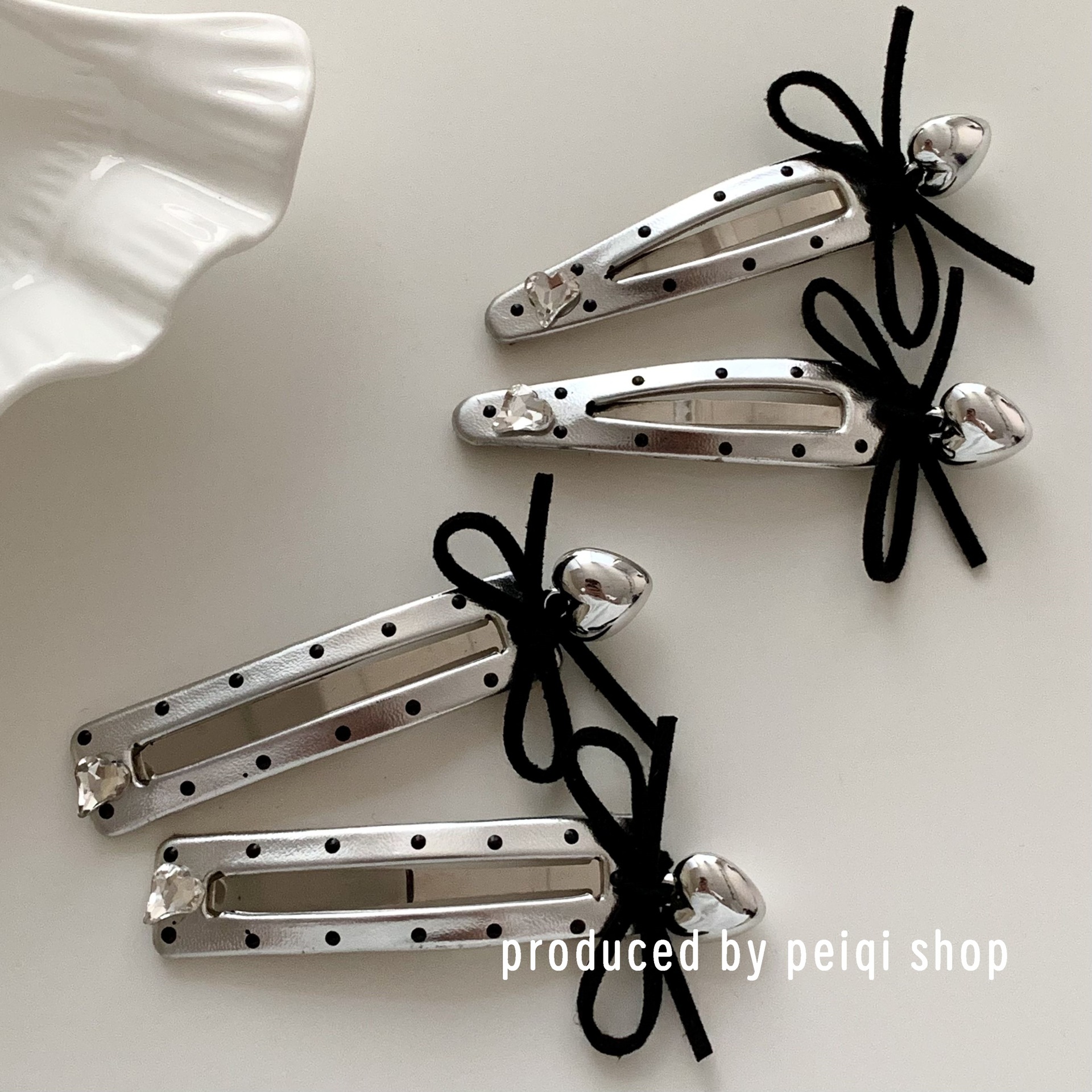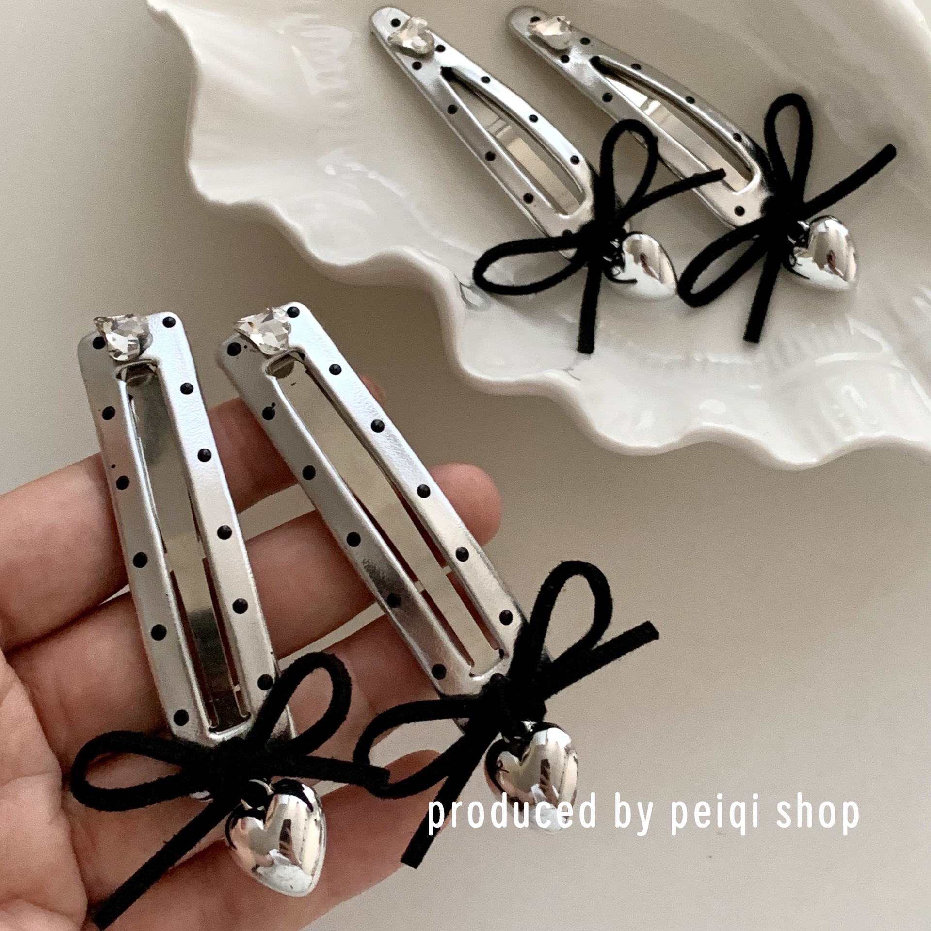 2 silver wave point hollowed heart shape water drops barrettes one