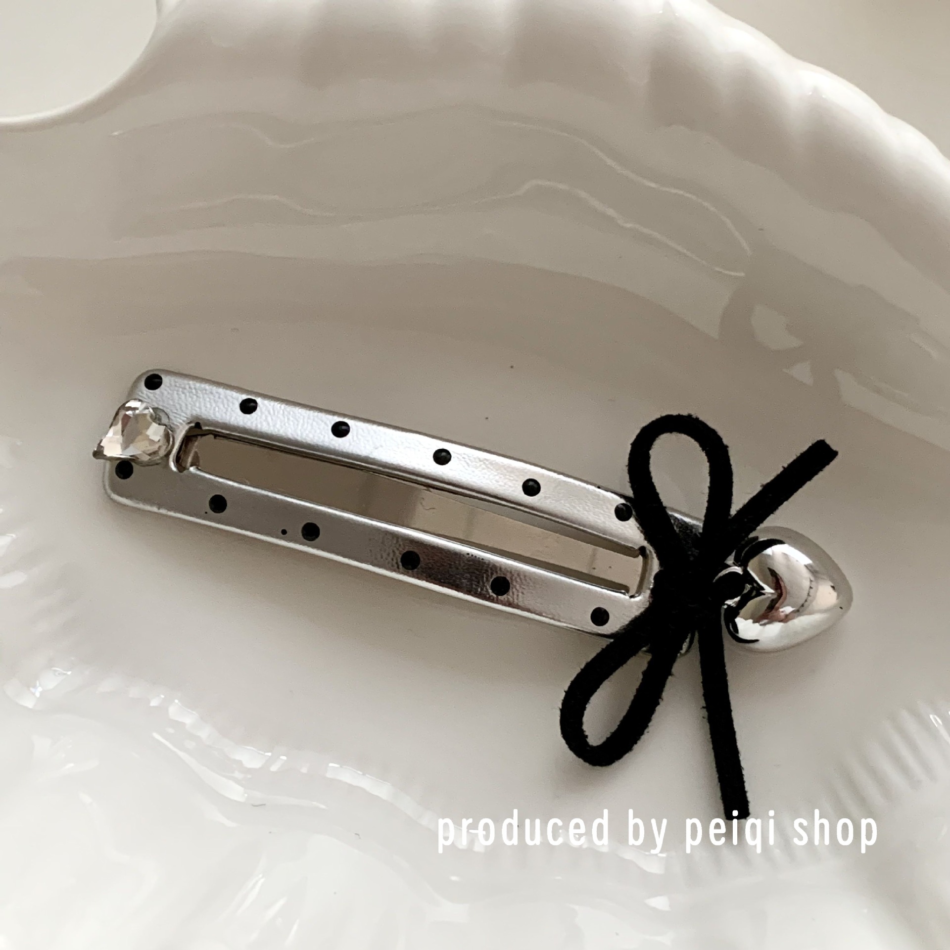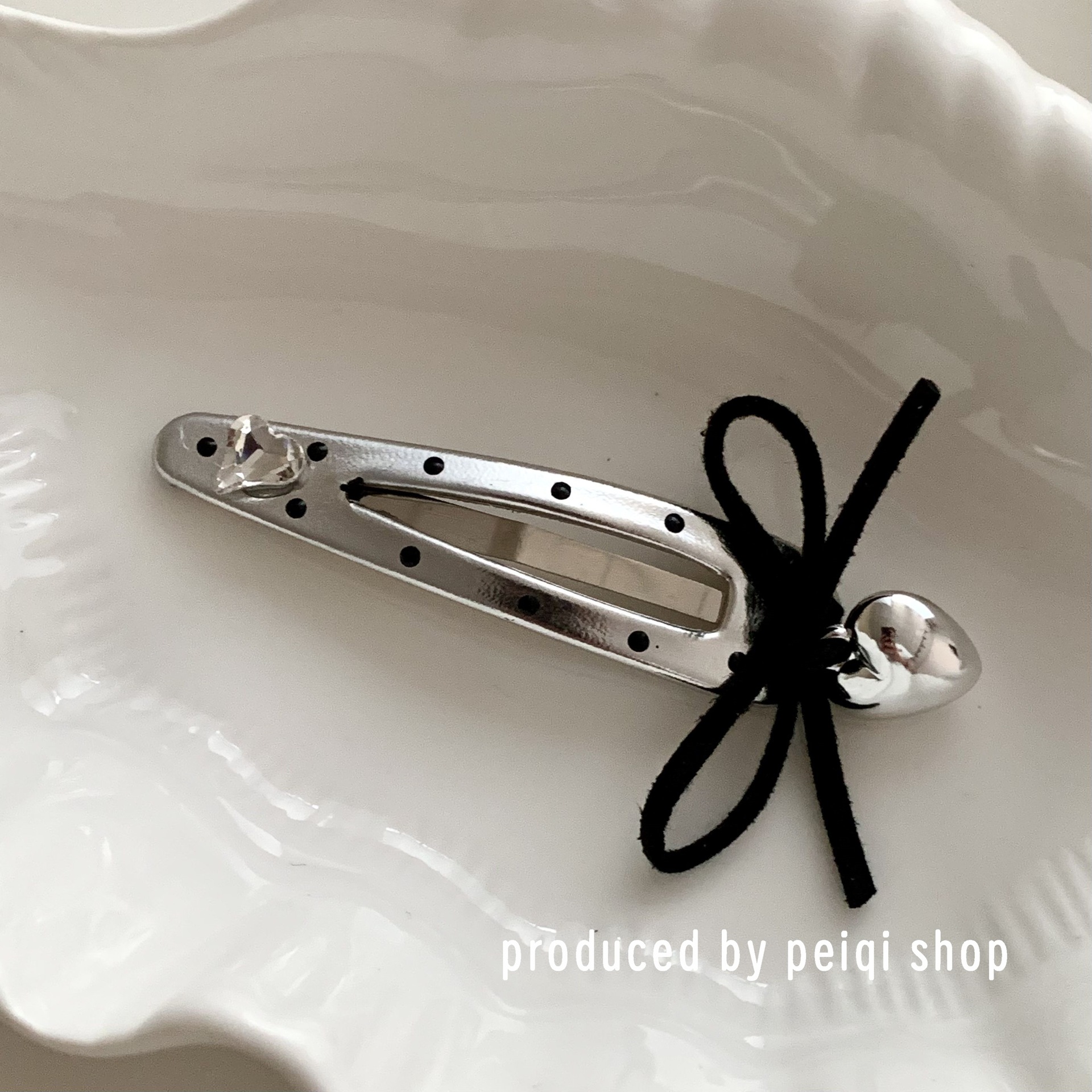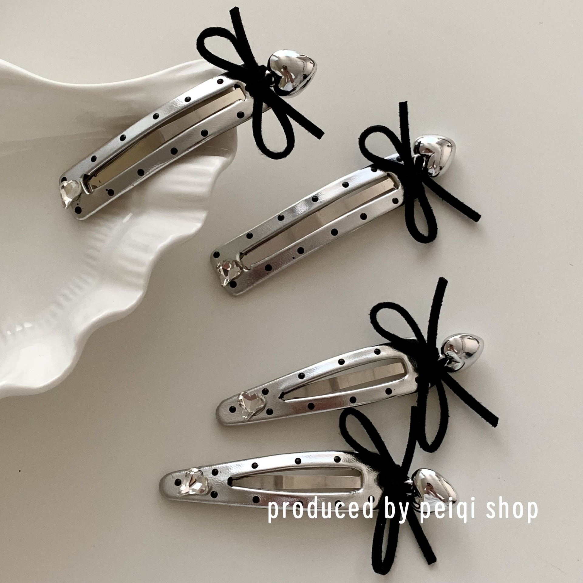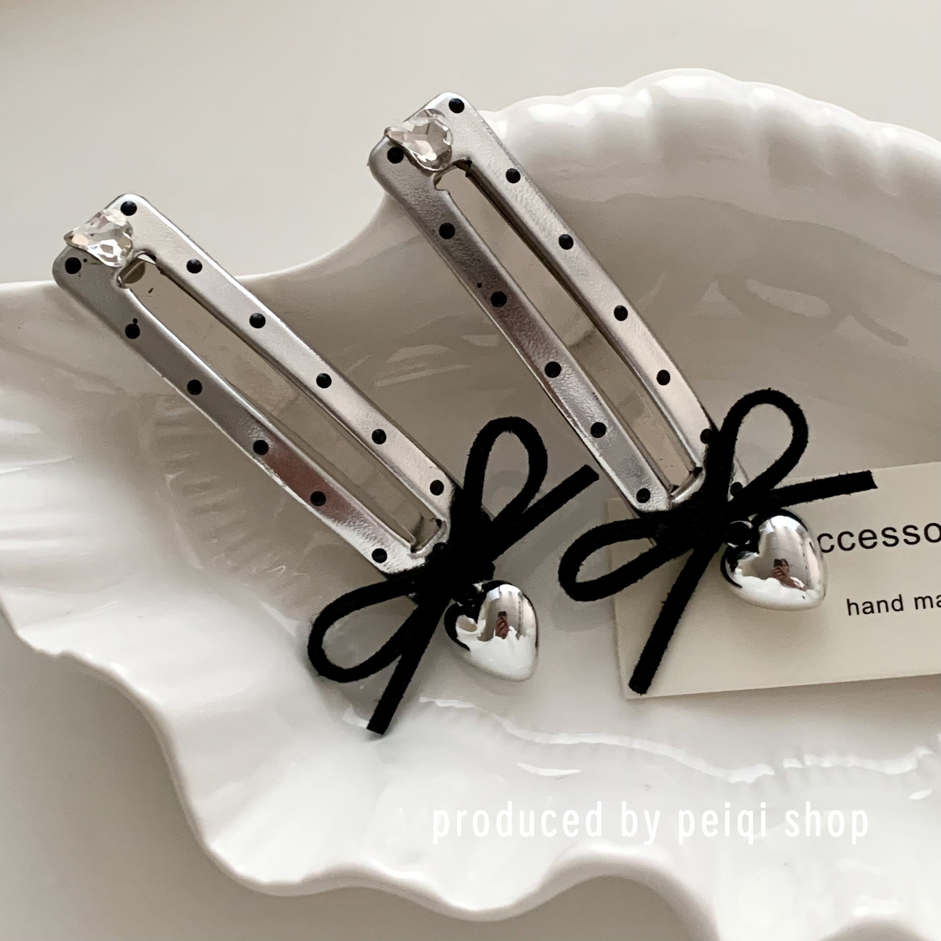 2 silver wave point hollowed heart shape water drops barrettes one
