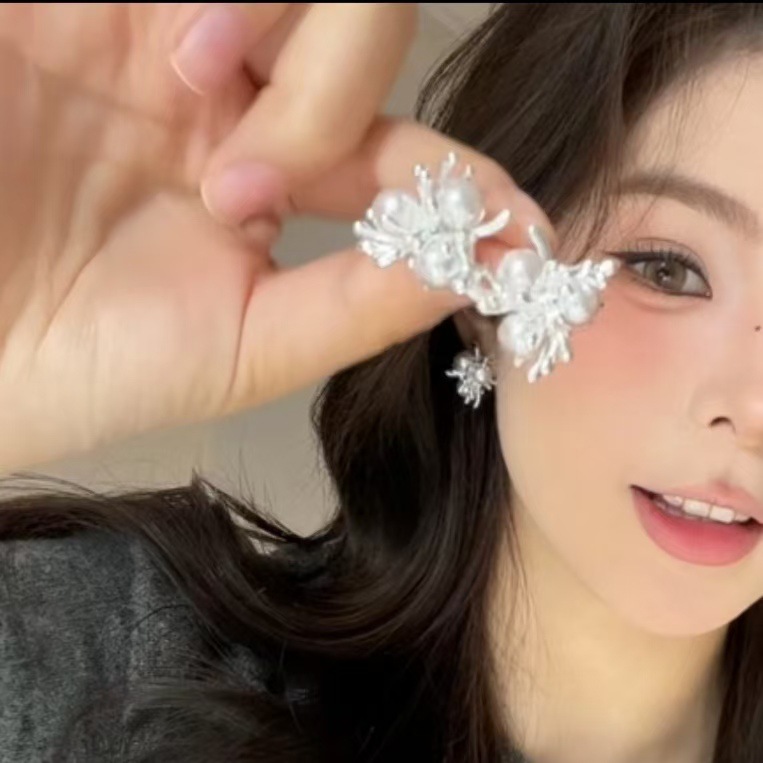 silver firework pearl ear studs