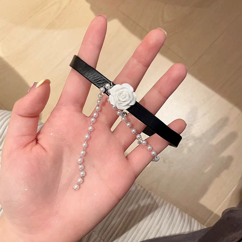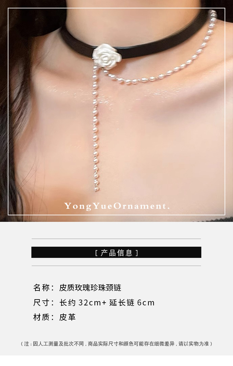 leather rose pearl necklace