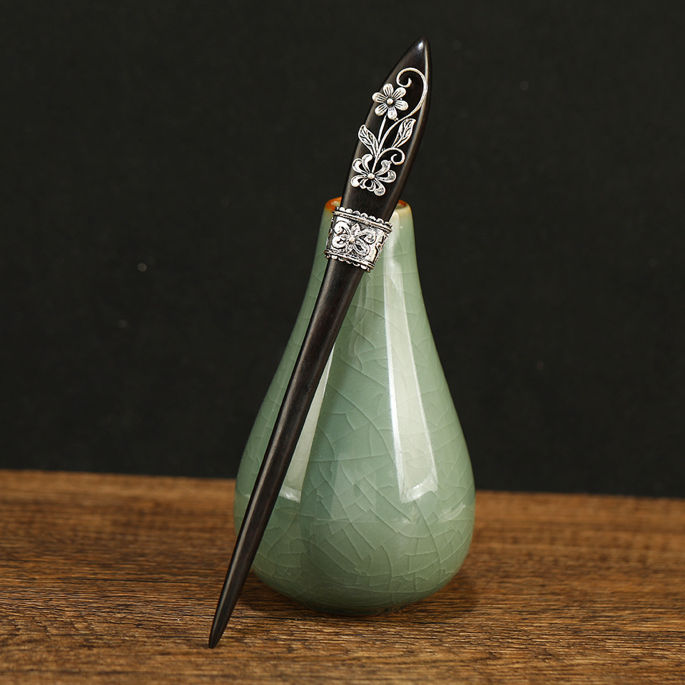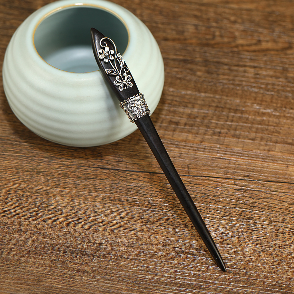 long handle antique silver patch ebony hairpin king whyte