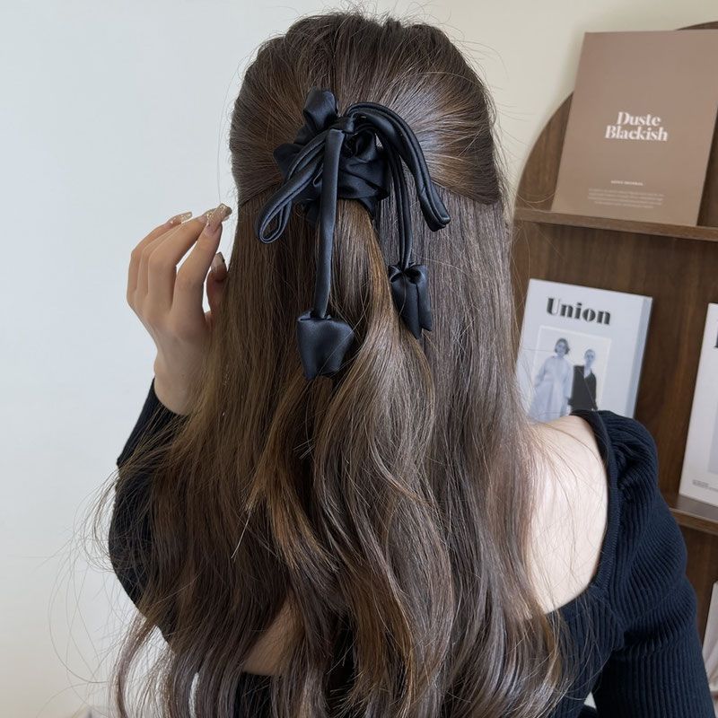 black rose ribbon hair ring