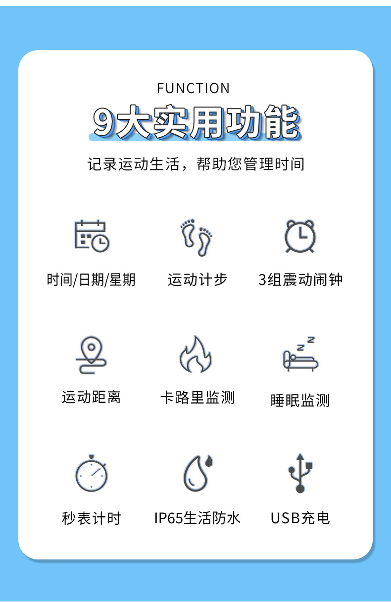 blue [vibration alarm clock/sport step counting/stopwatch timing]]