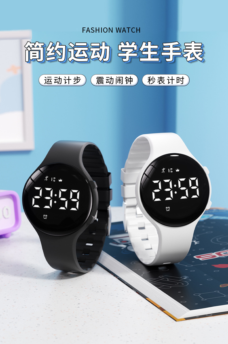 white【 vibration alarm clock/sport step counting/stopwatch timing]]