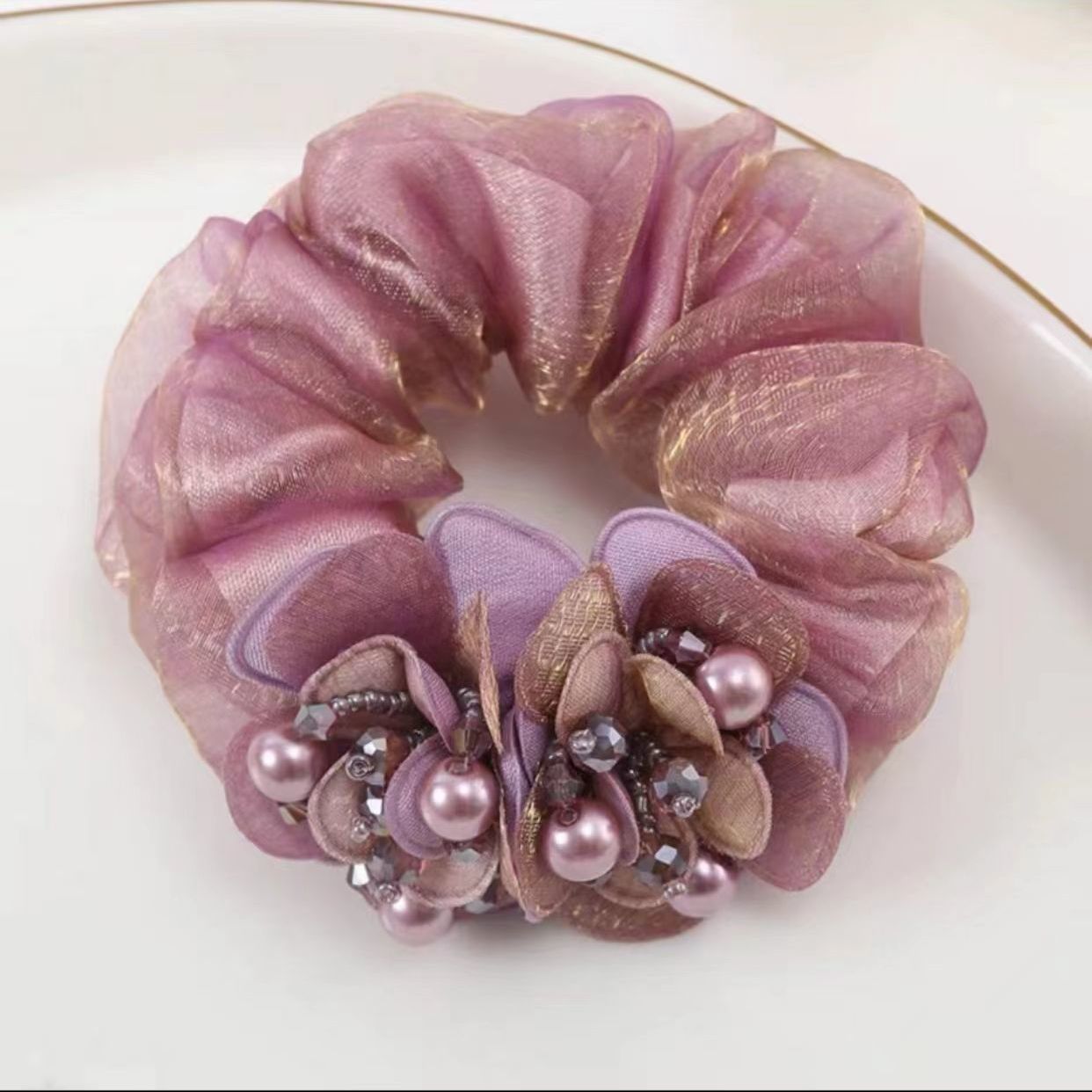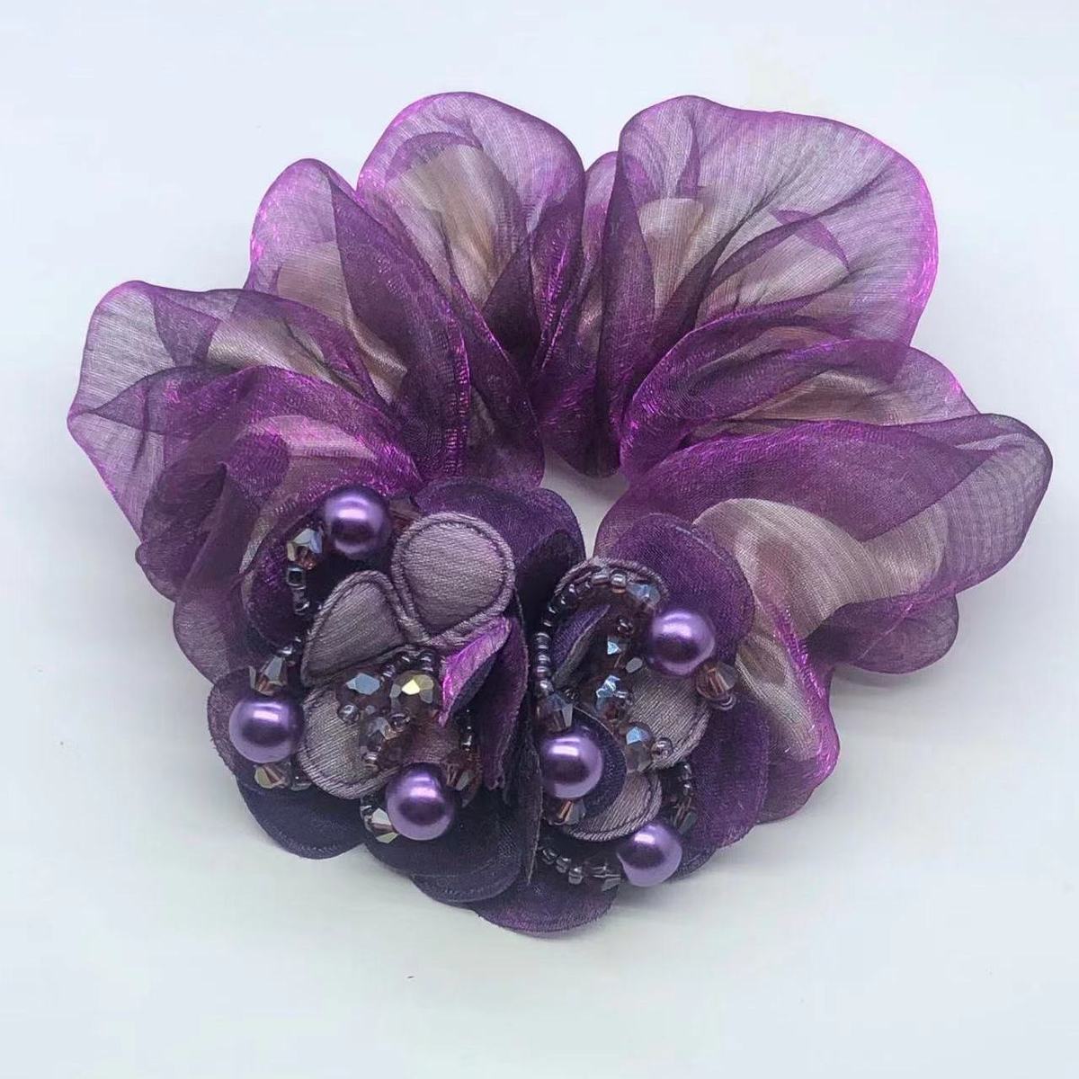 double flower hair rope dark purple