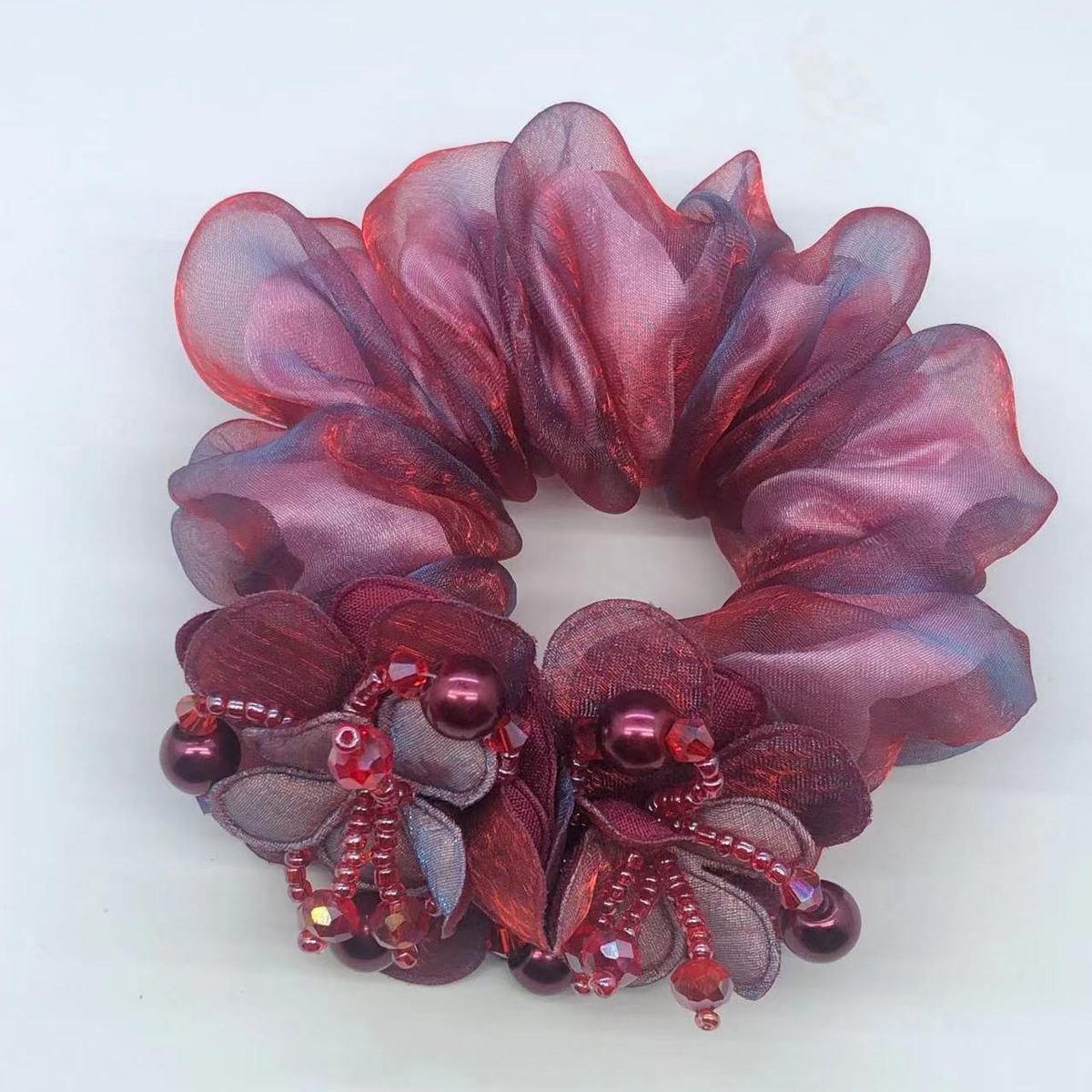 double flower hair rope red