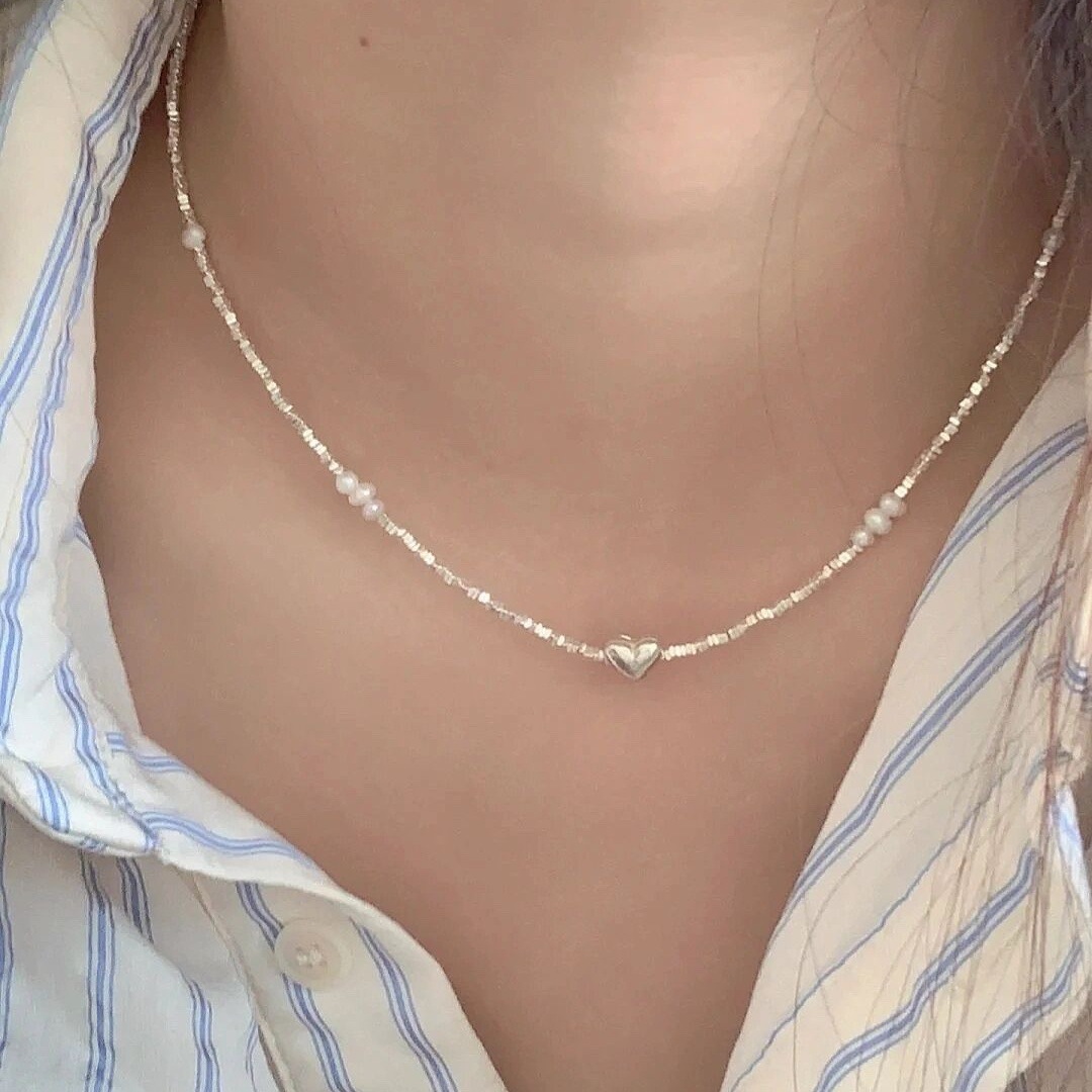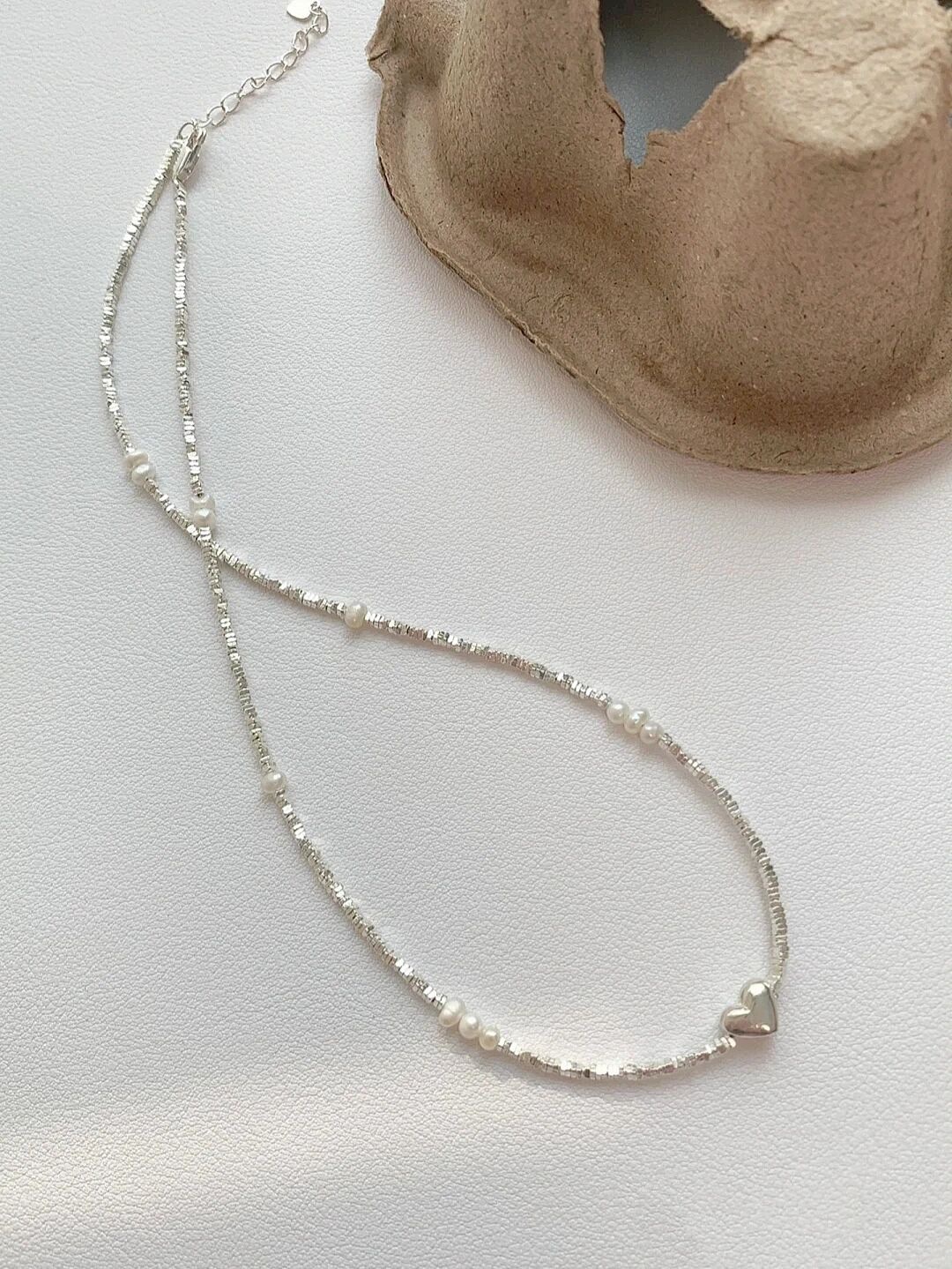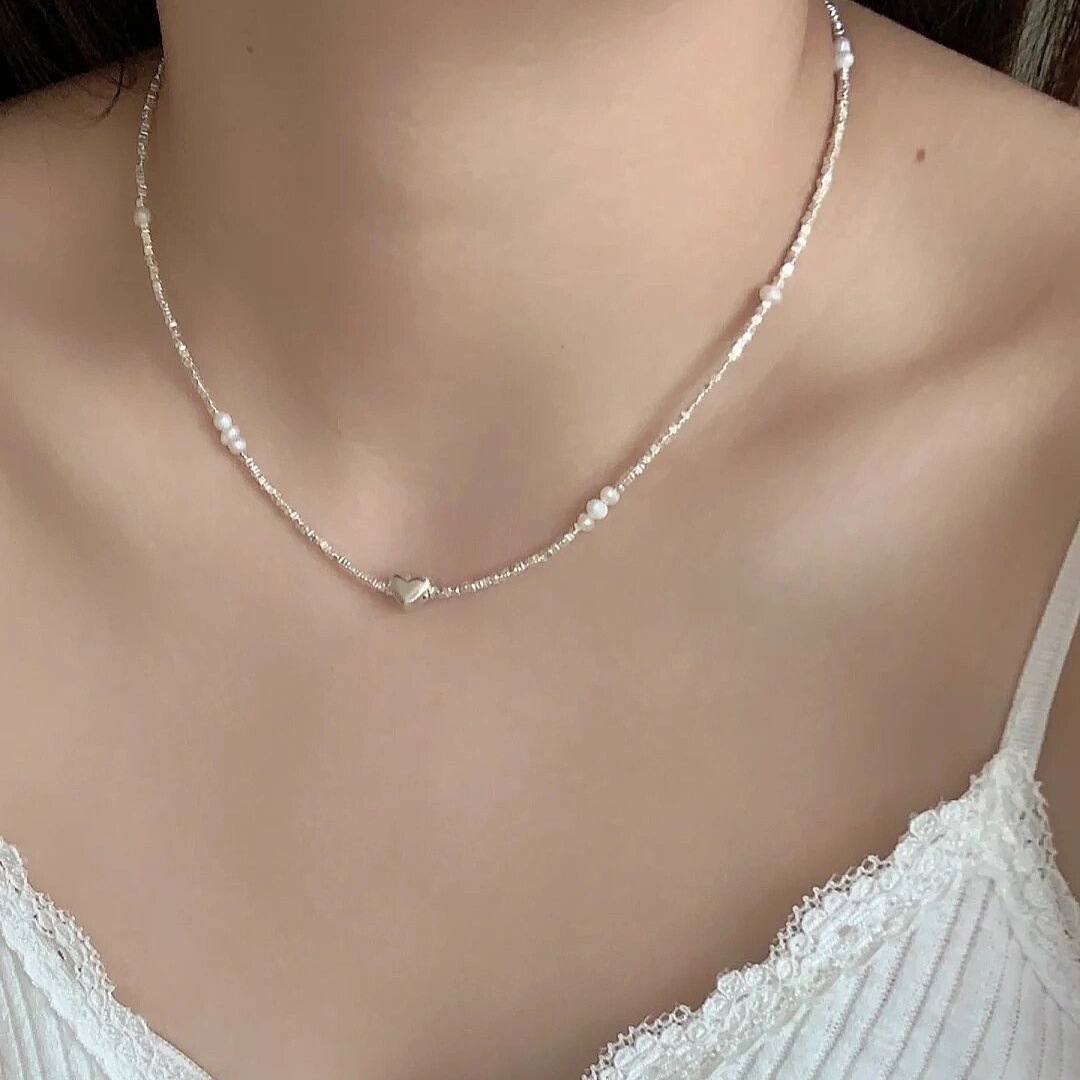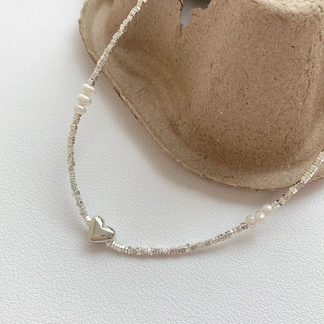 heart small pieces of silver pearl necklace
