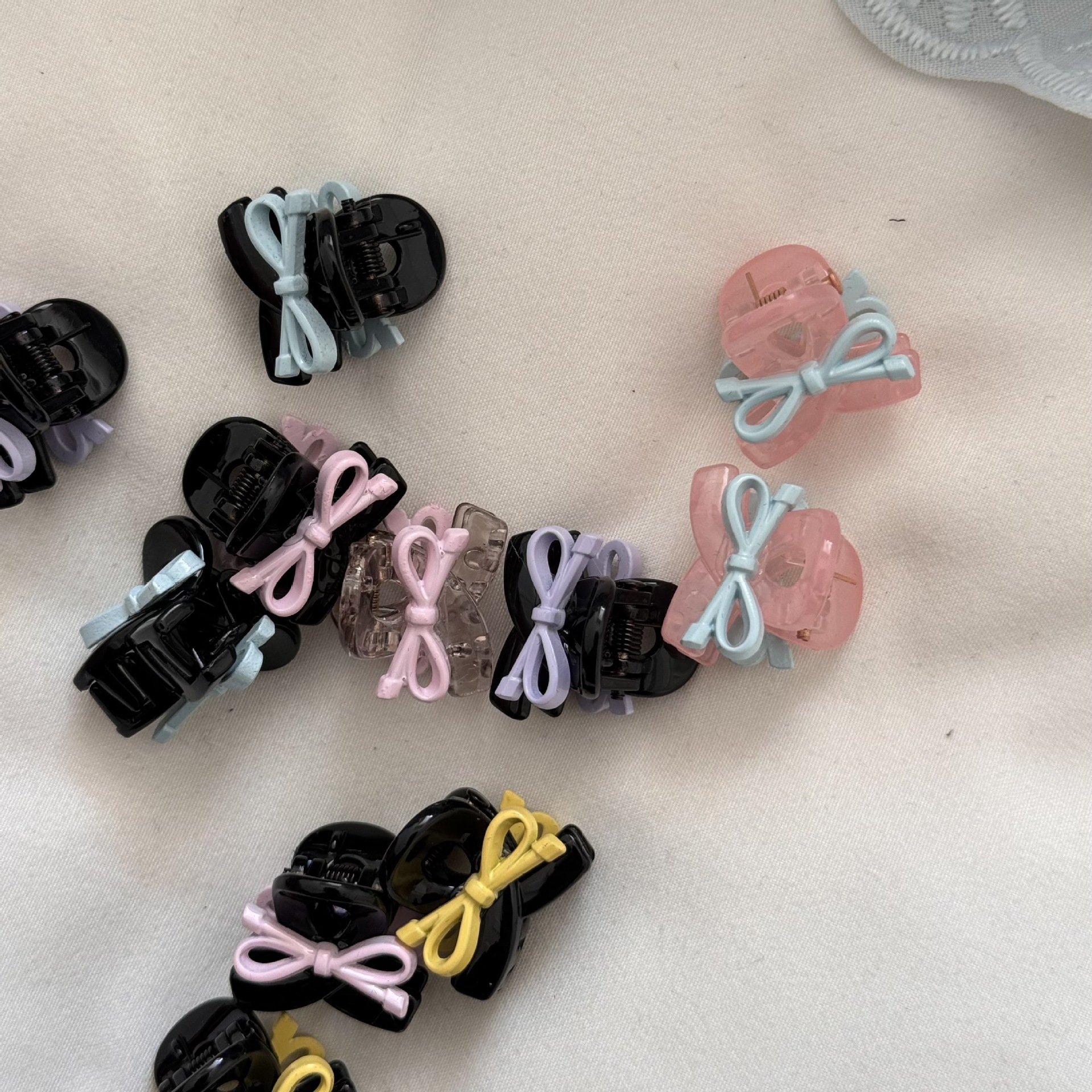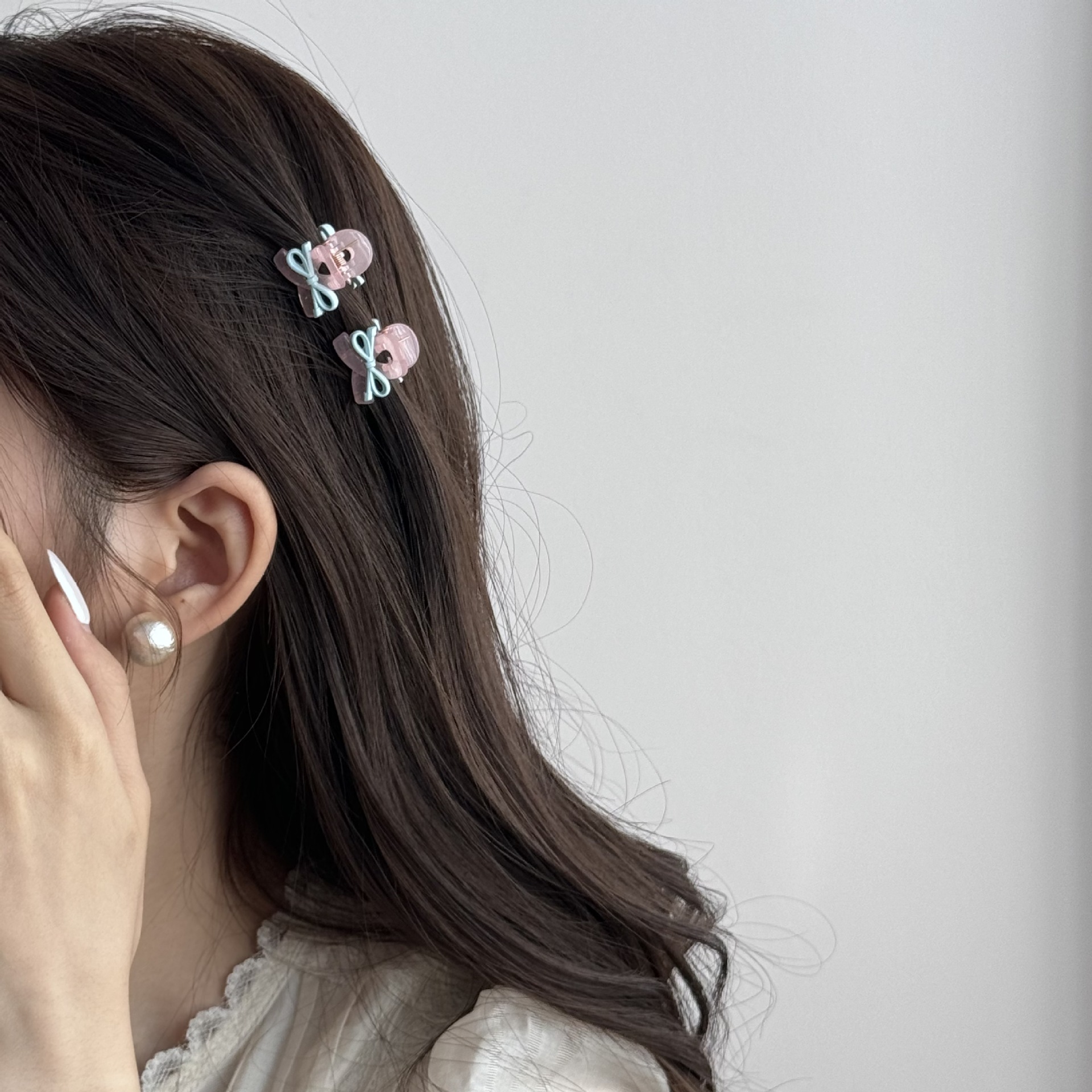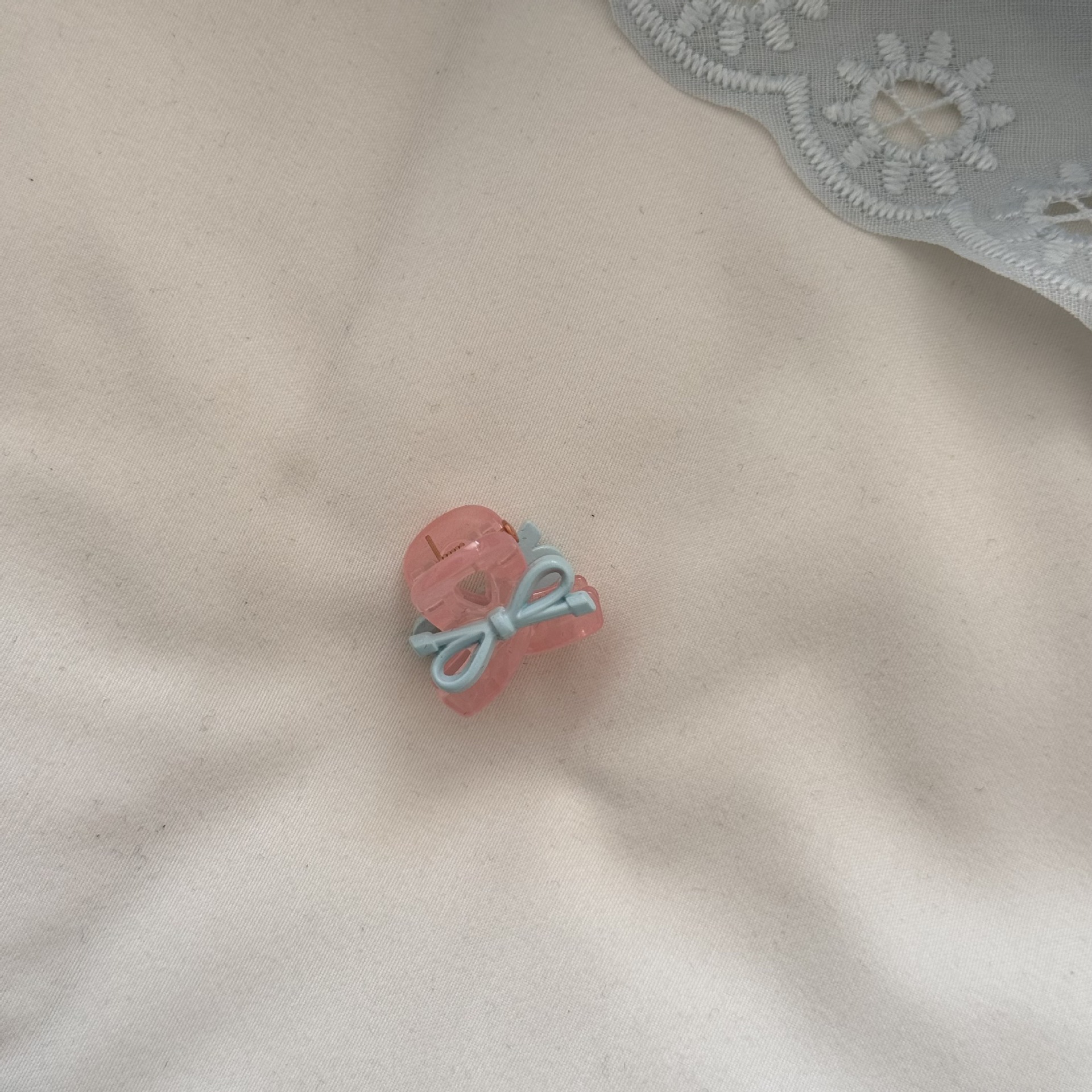 pink grip-blue bow