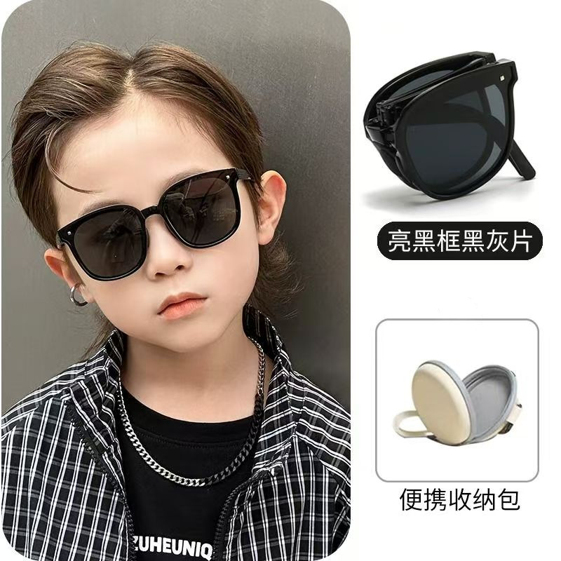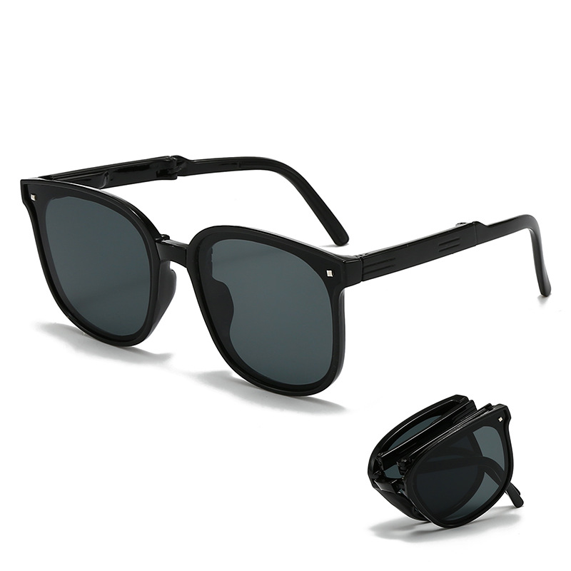 hh033 black frame black and grey lens + folding contact lens case (ordinary)