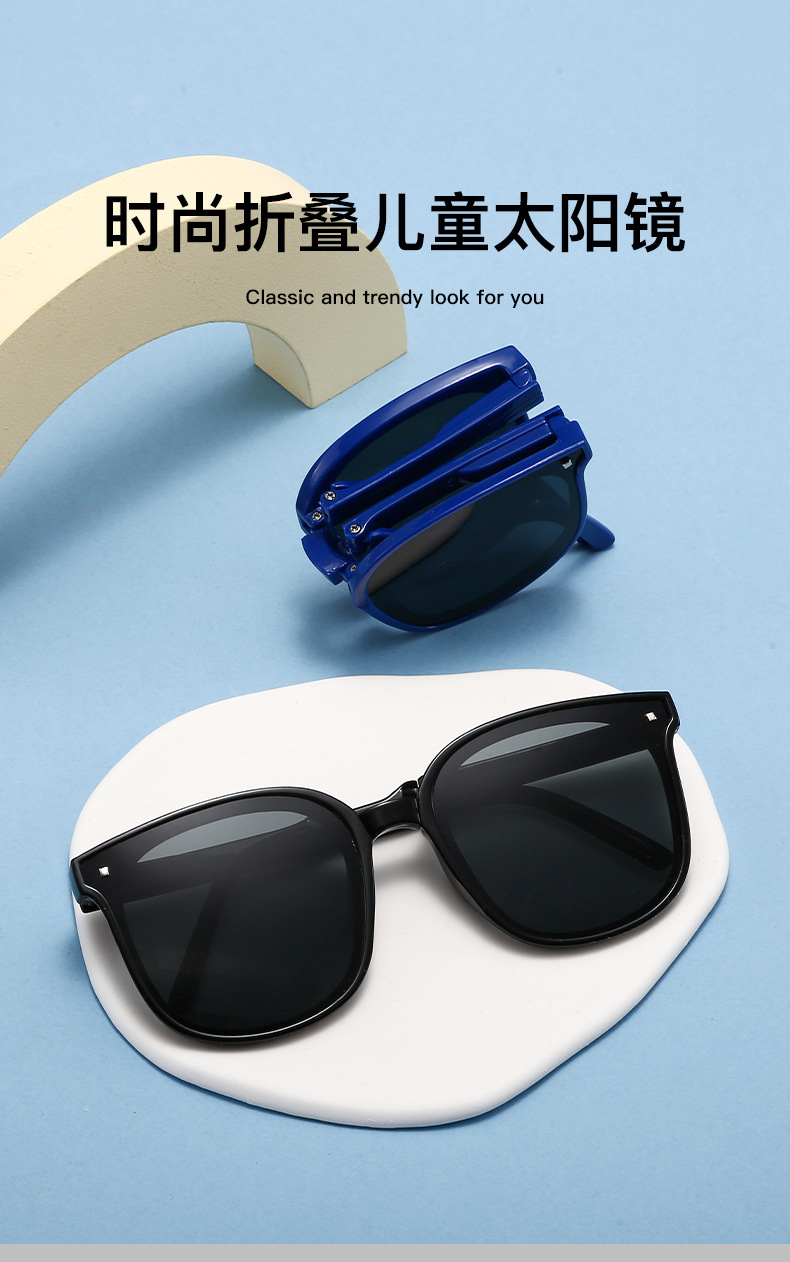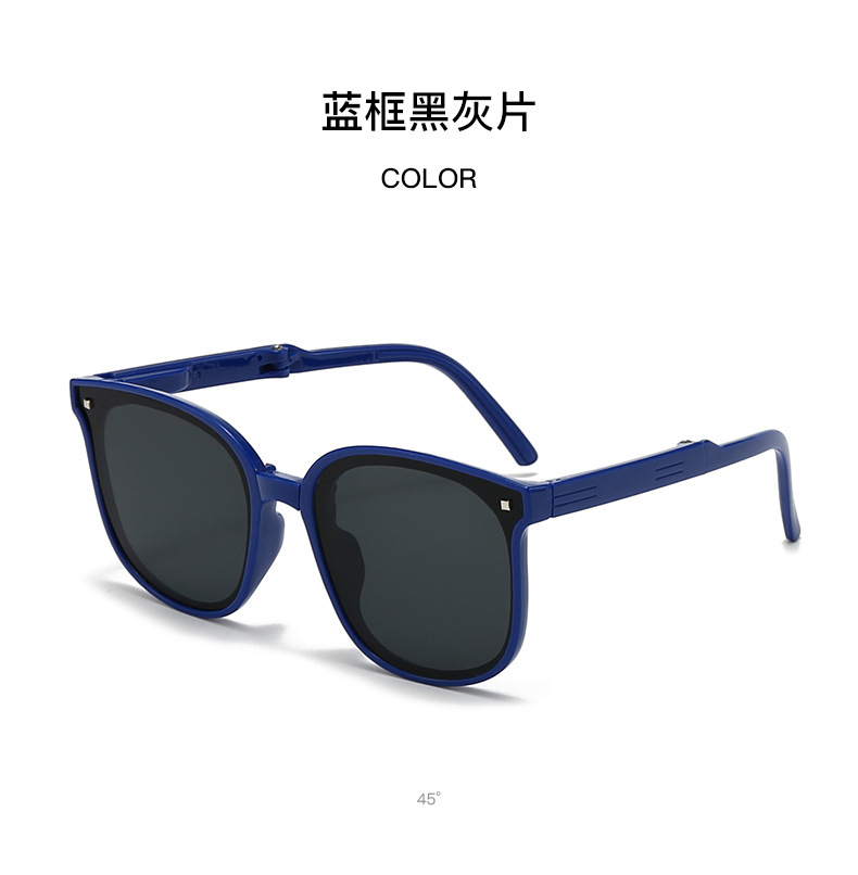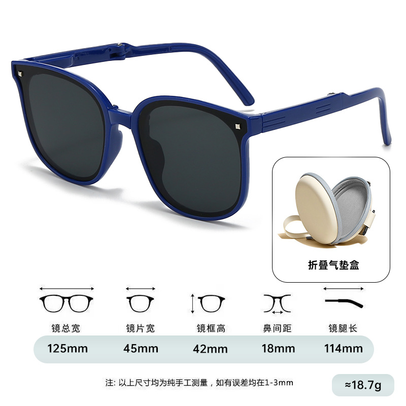 hh033 blue frame black and grey lens + folding contact lens case (ordinary)