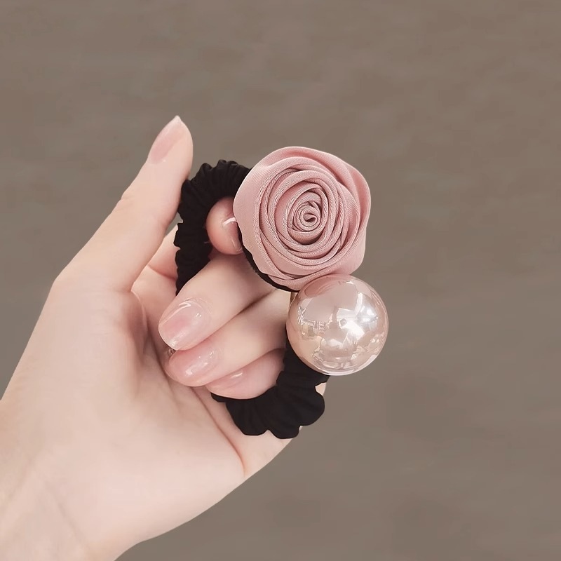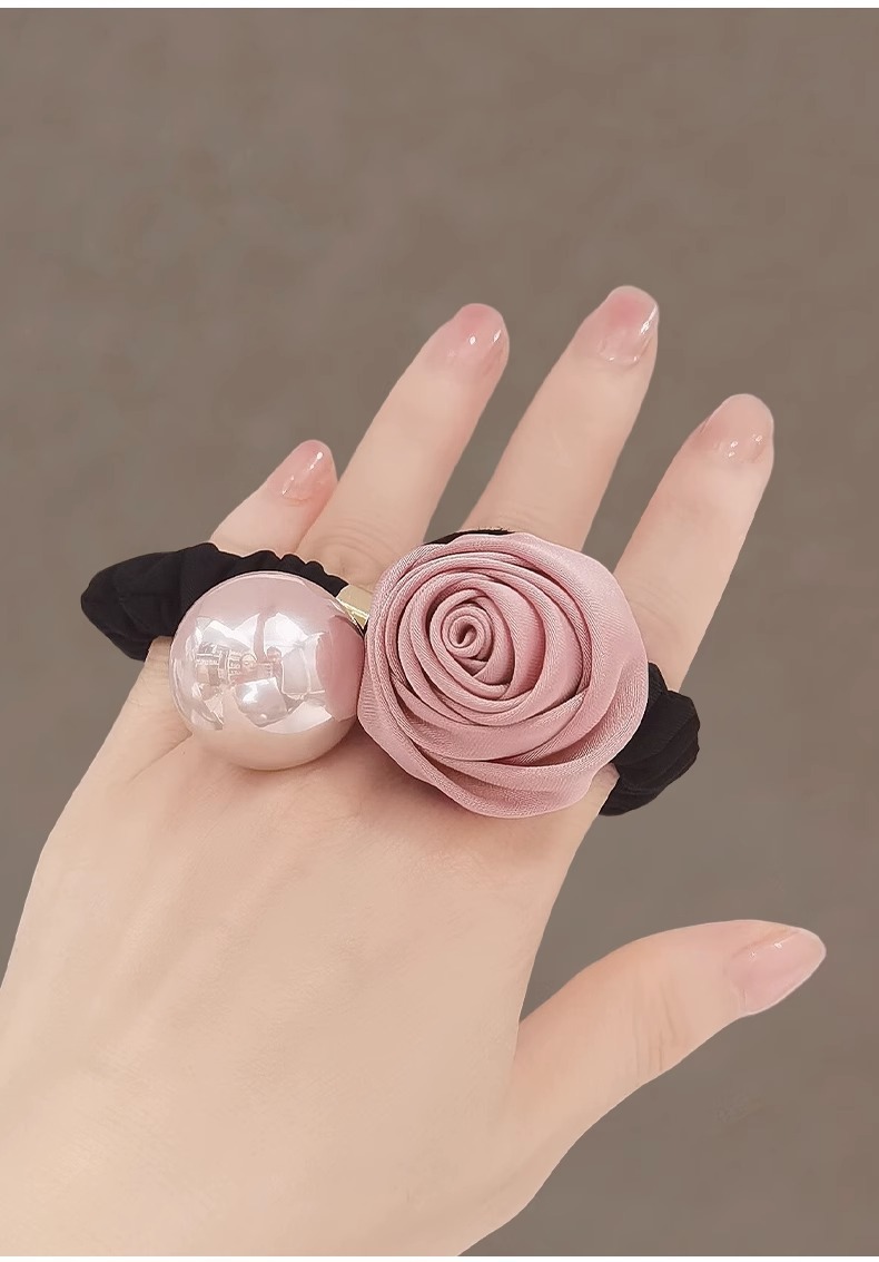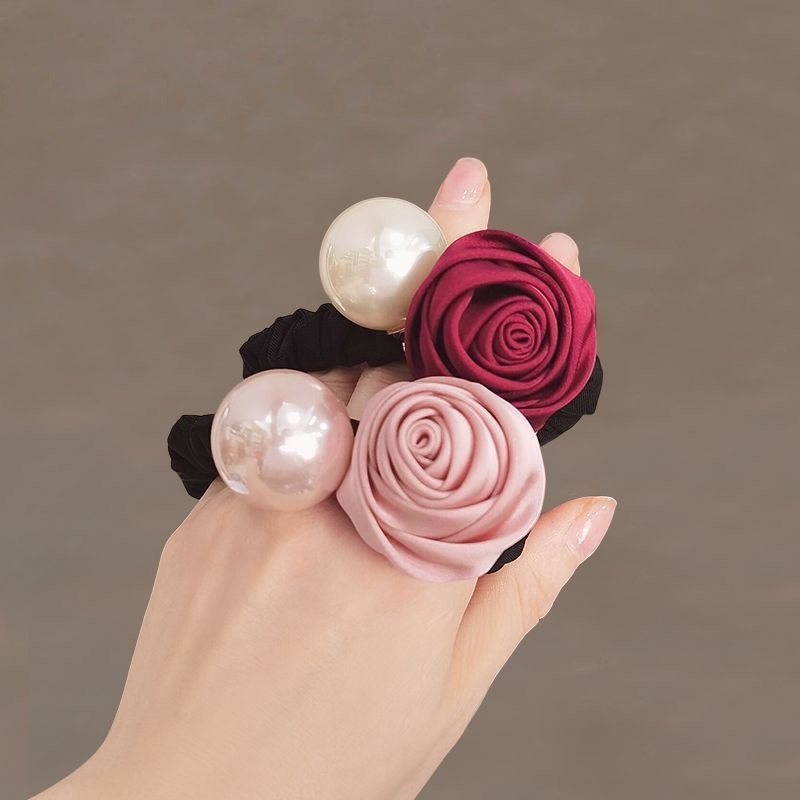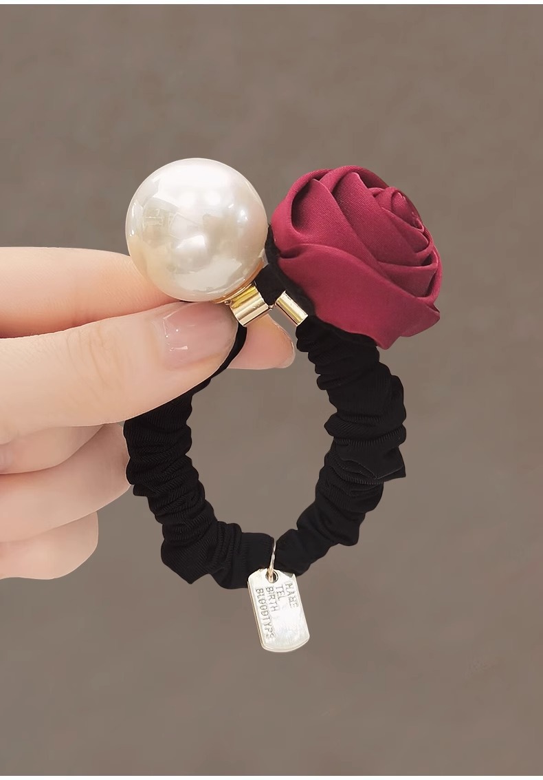 rose pearl hair ring-wine red