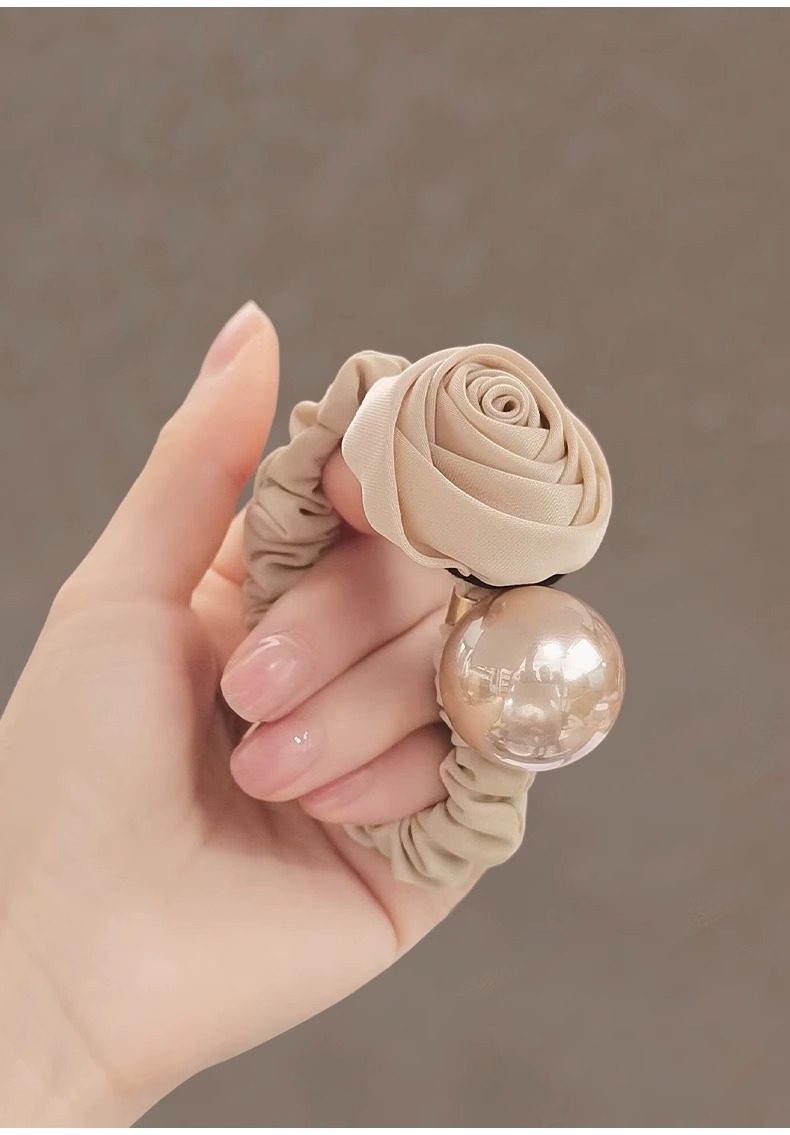 rose pearl hair ring-khaki