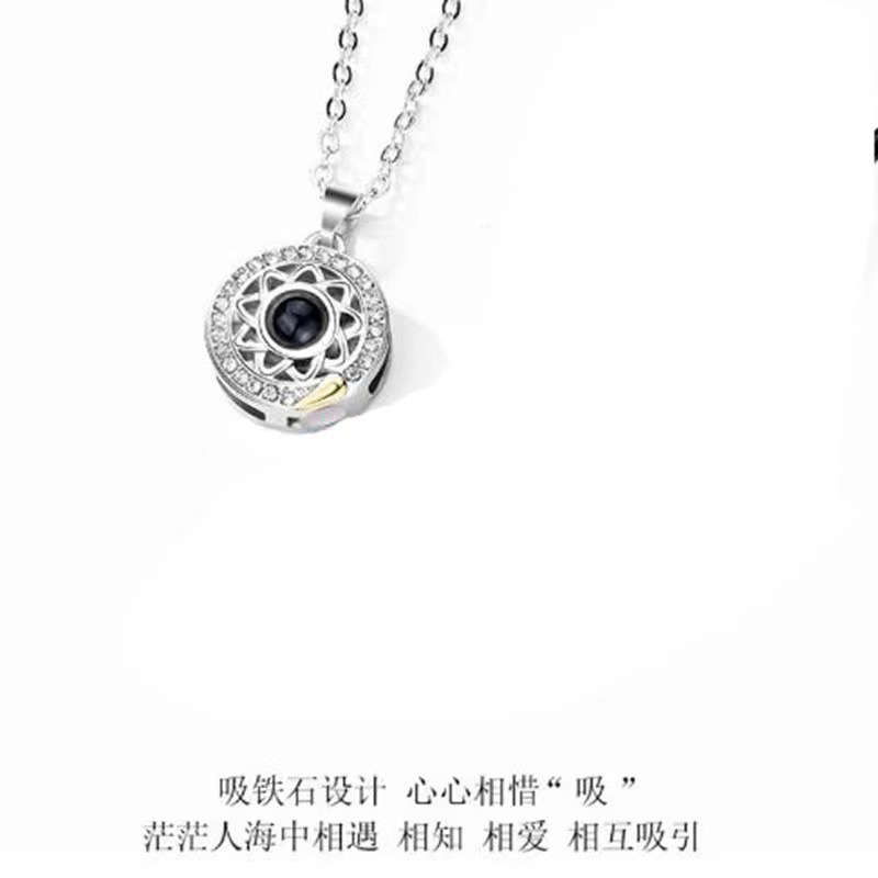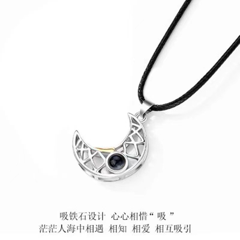 gold and daylight color silver moon (gold necklace + black leather rope)