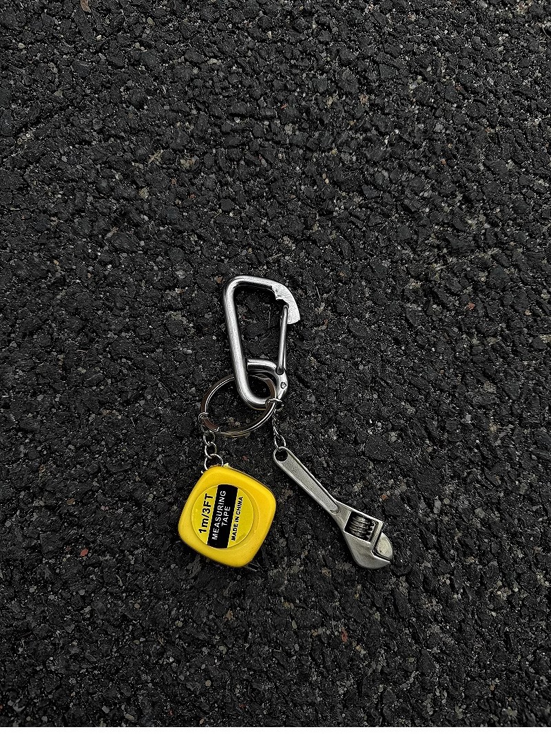 climbing button carabiner + mini tape measure + wrench