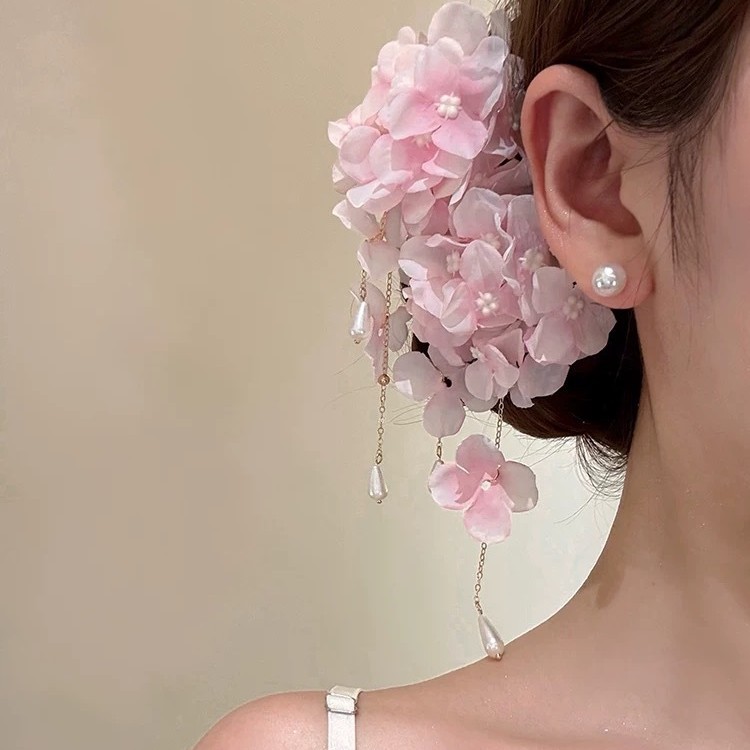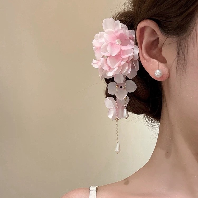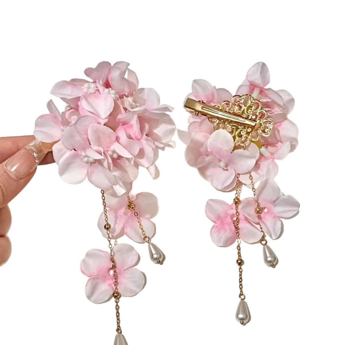 pink hydrangea a pair of hairclips