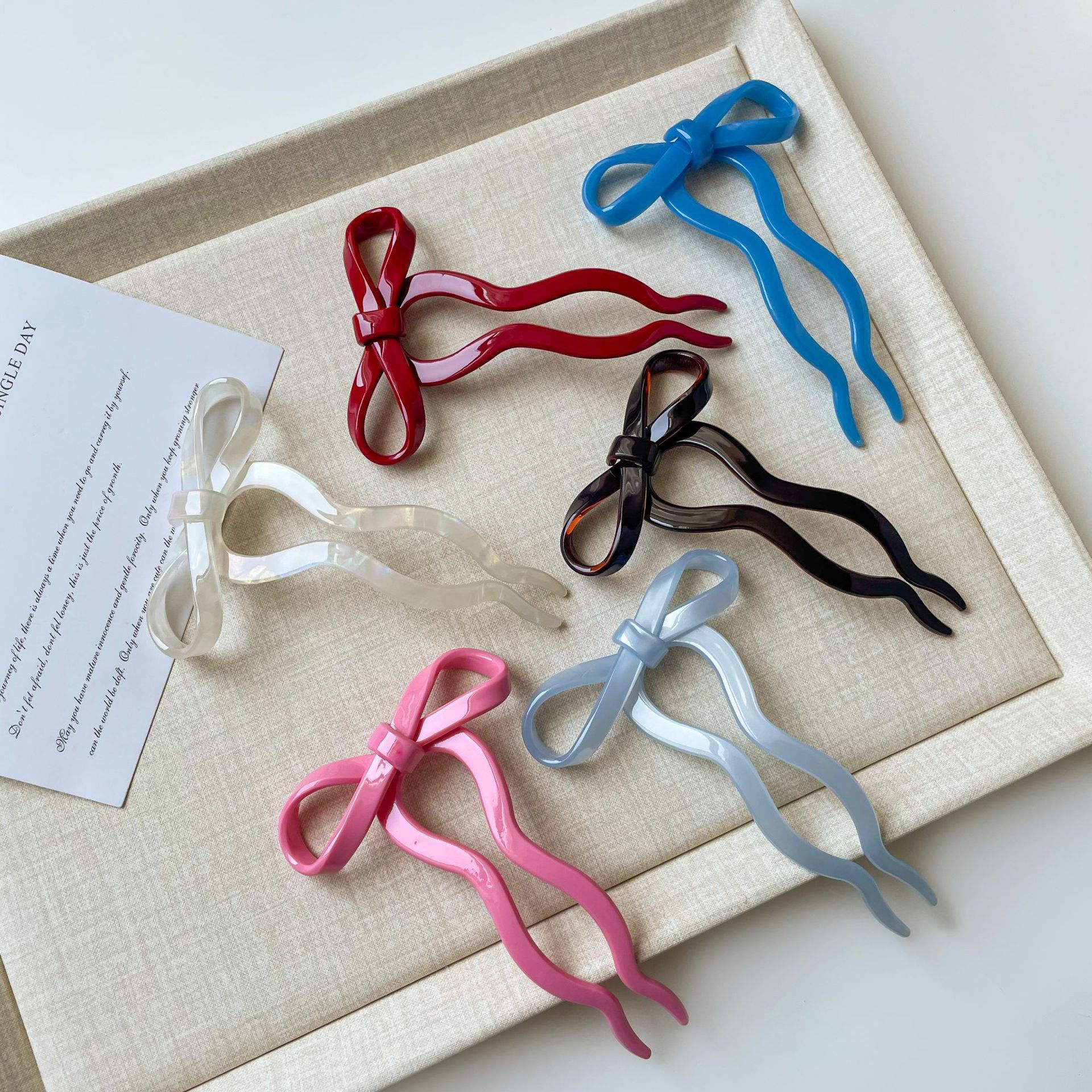 red bow u-shaped hair pin
