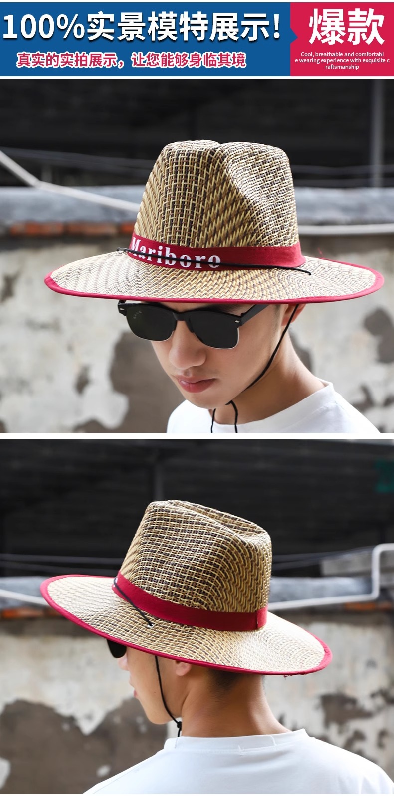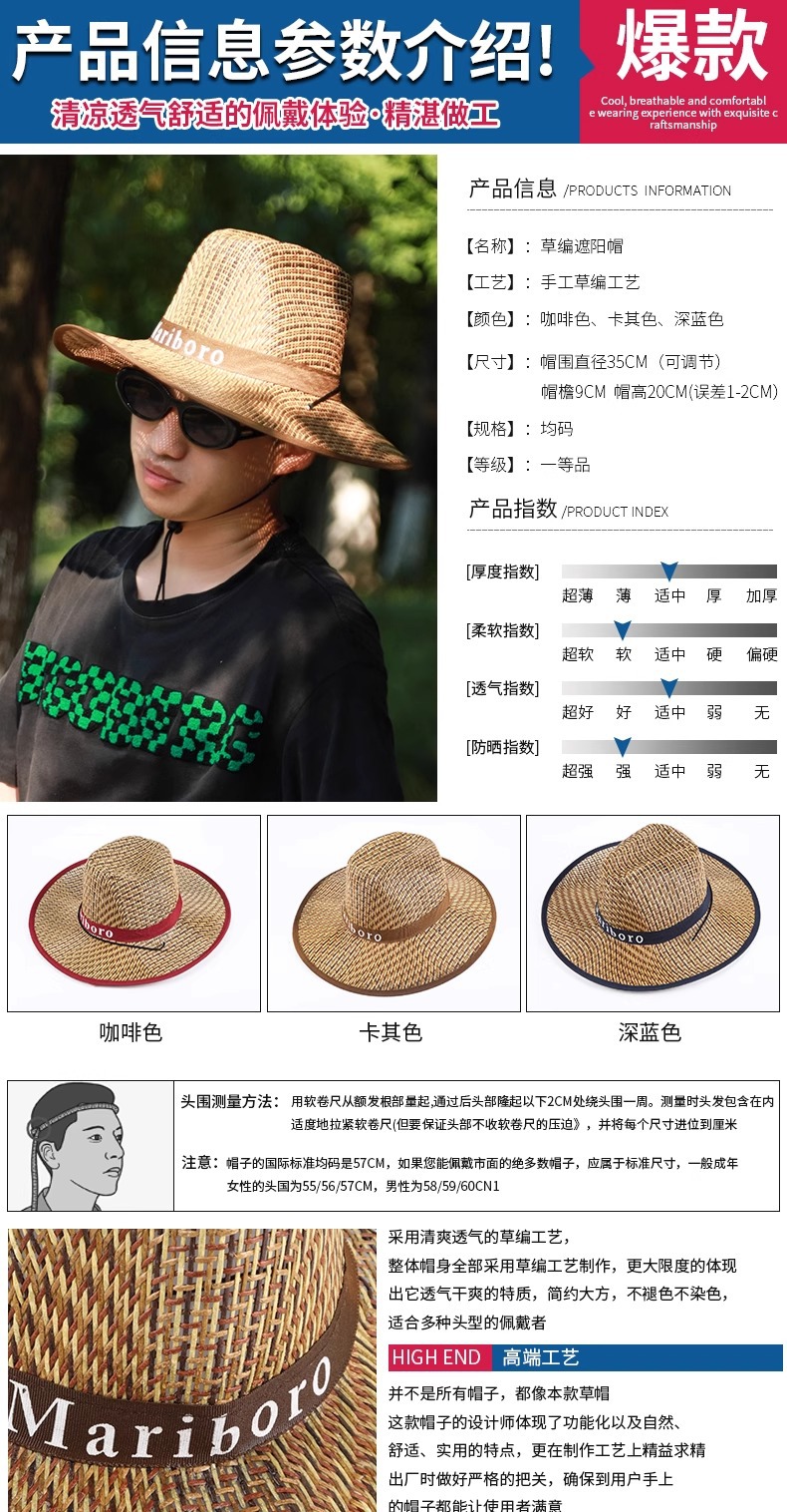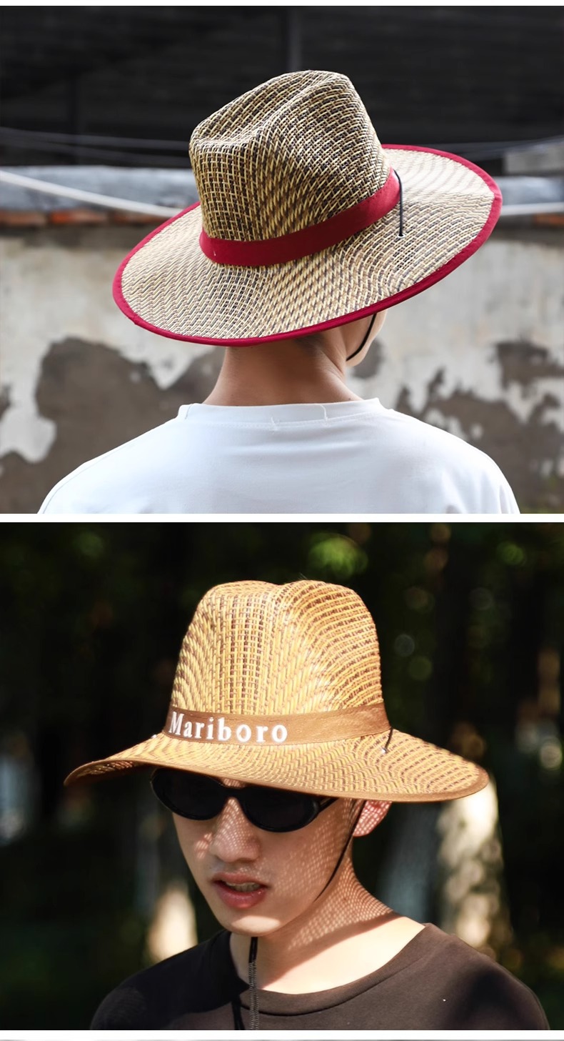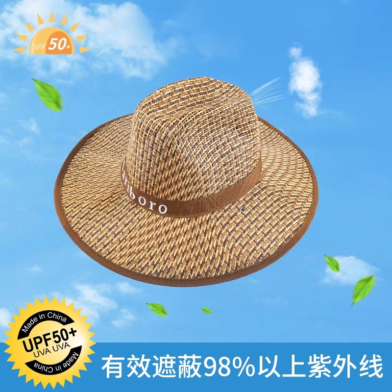 sun-proof straw hat-edge-navy blue