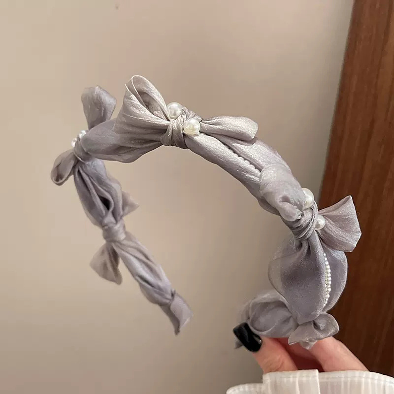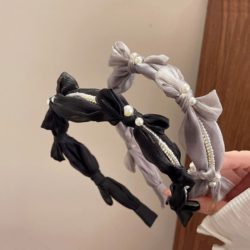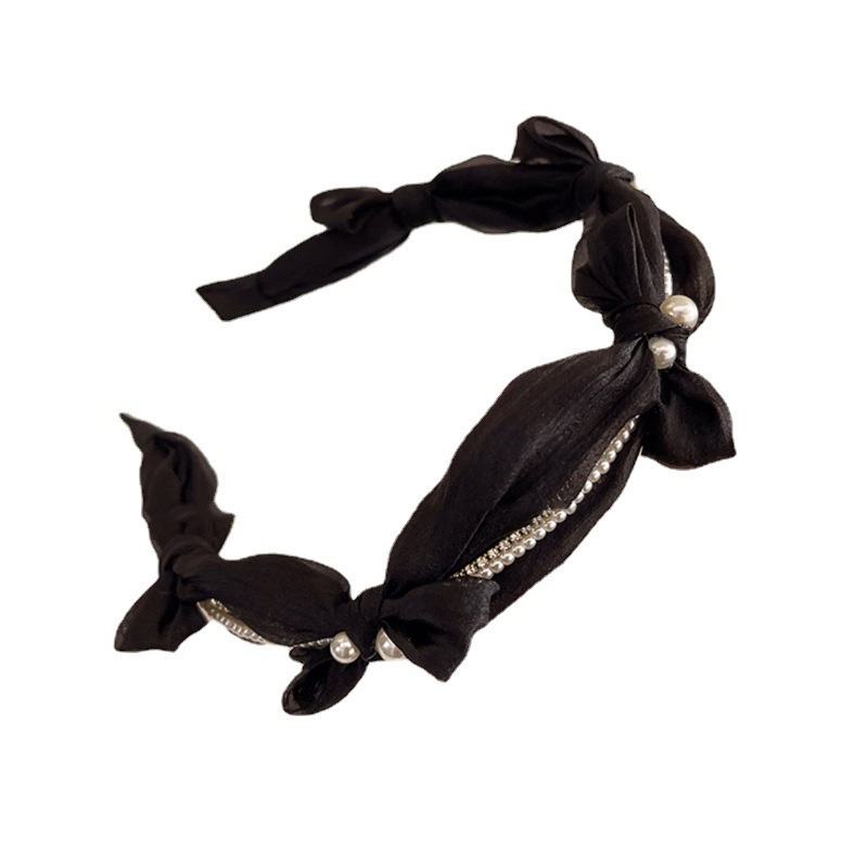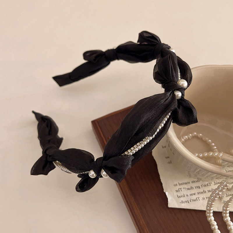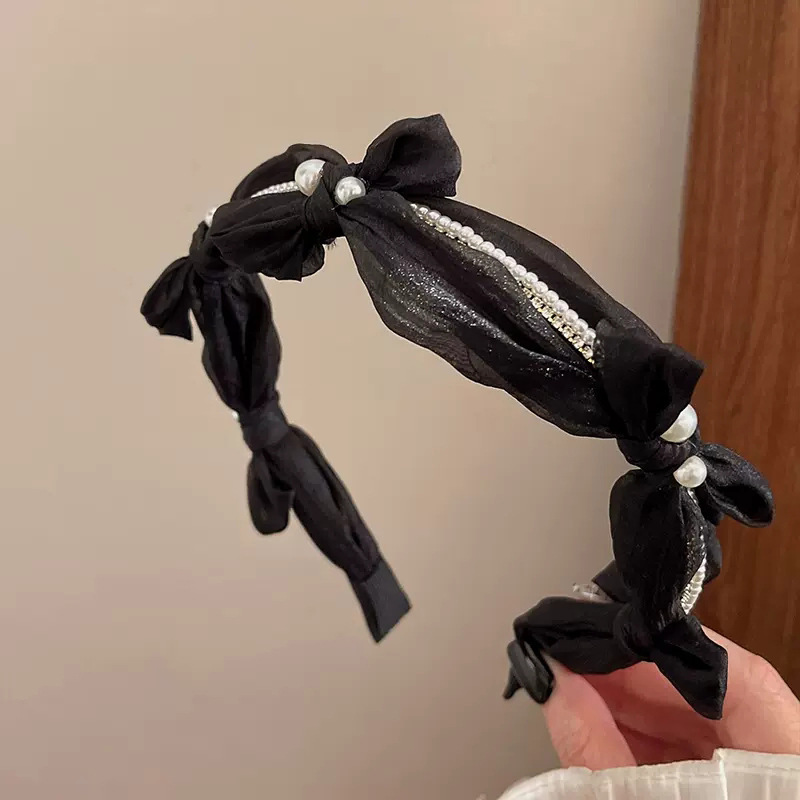 1# mesh pearl bow headband-black