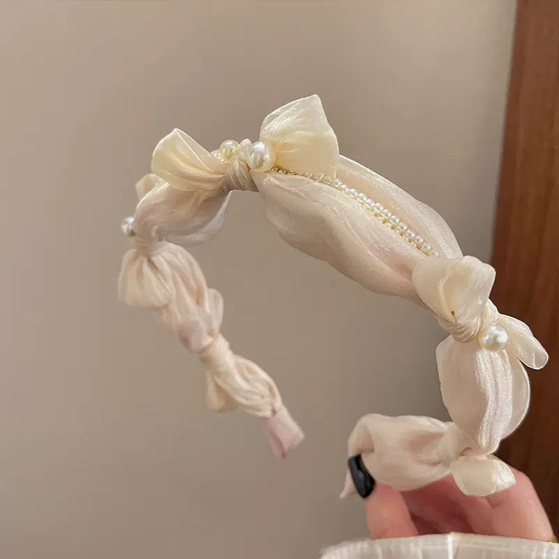 2# mesh pearl bow headband-apricot