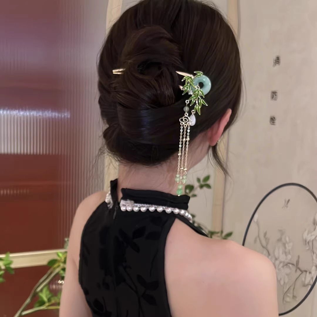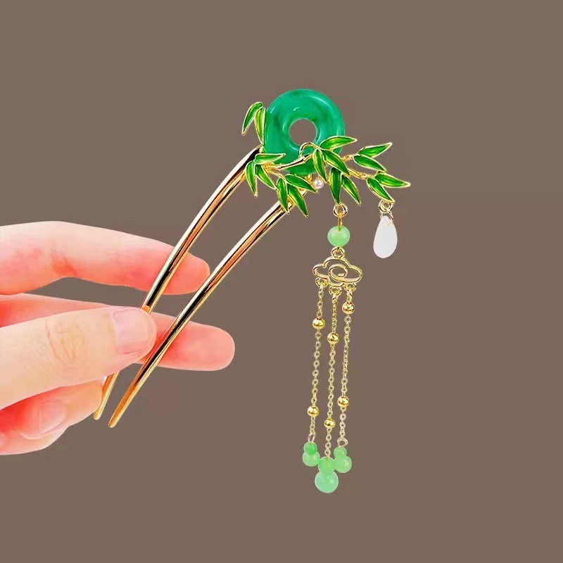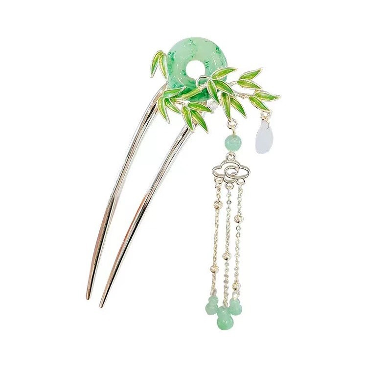bamboo jade pendant hair clasp