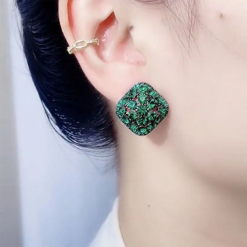 green geometric ear studs #2743