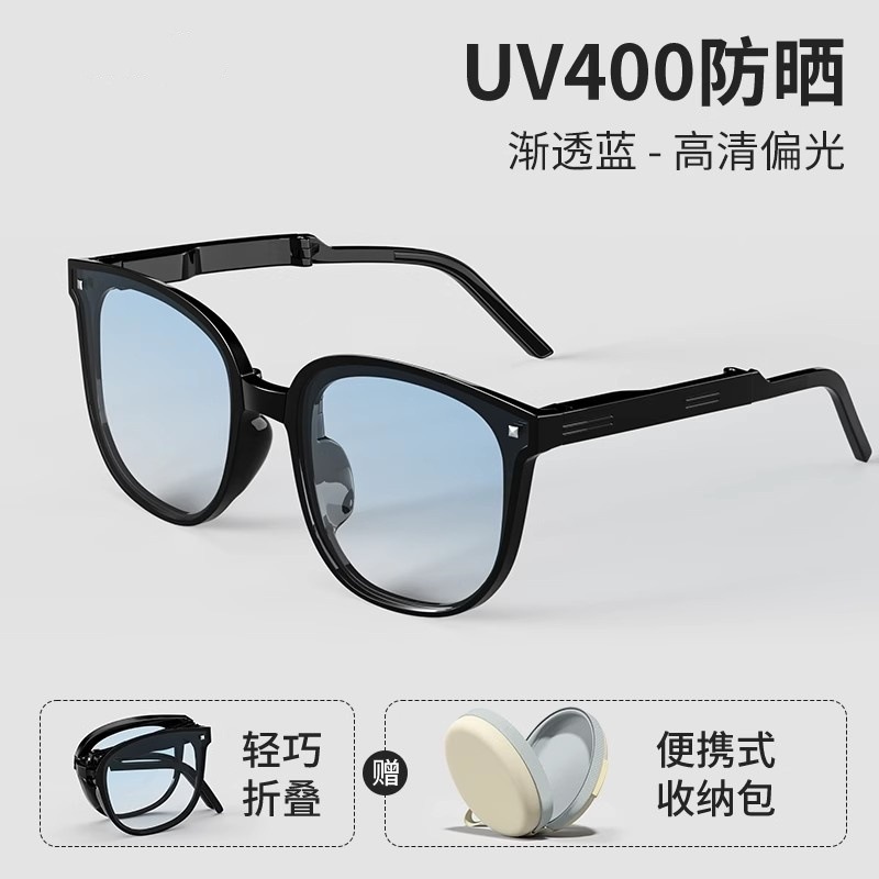 2001 folding transparent tea frame dried-hd polarized lens [portable round bag]]