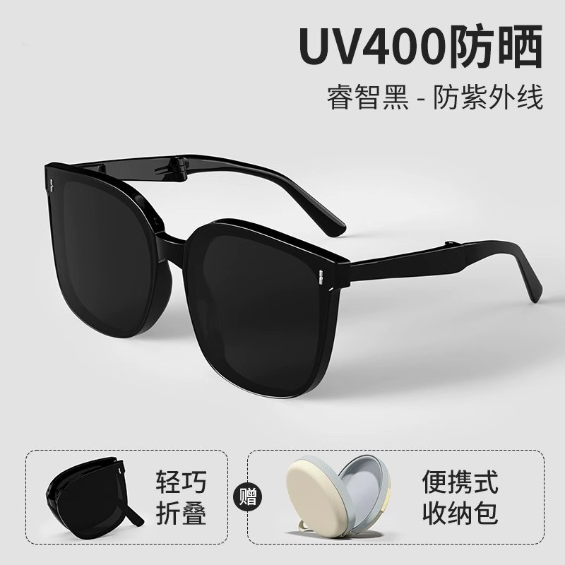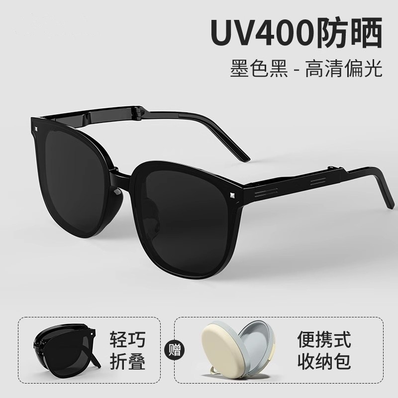 2001 folding black frame dried-sun-resistant sunglasses [portable round bag]]