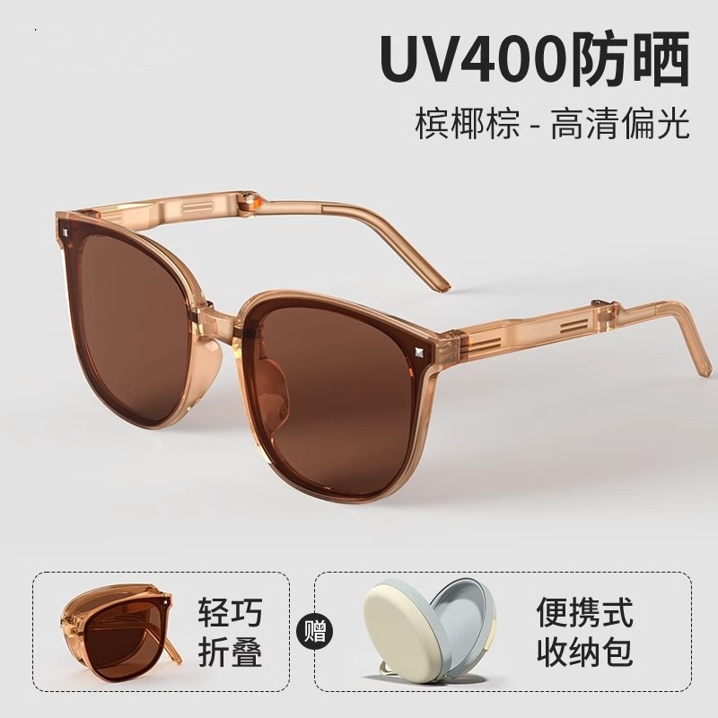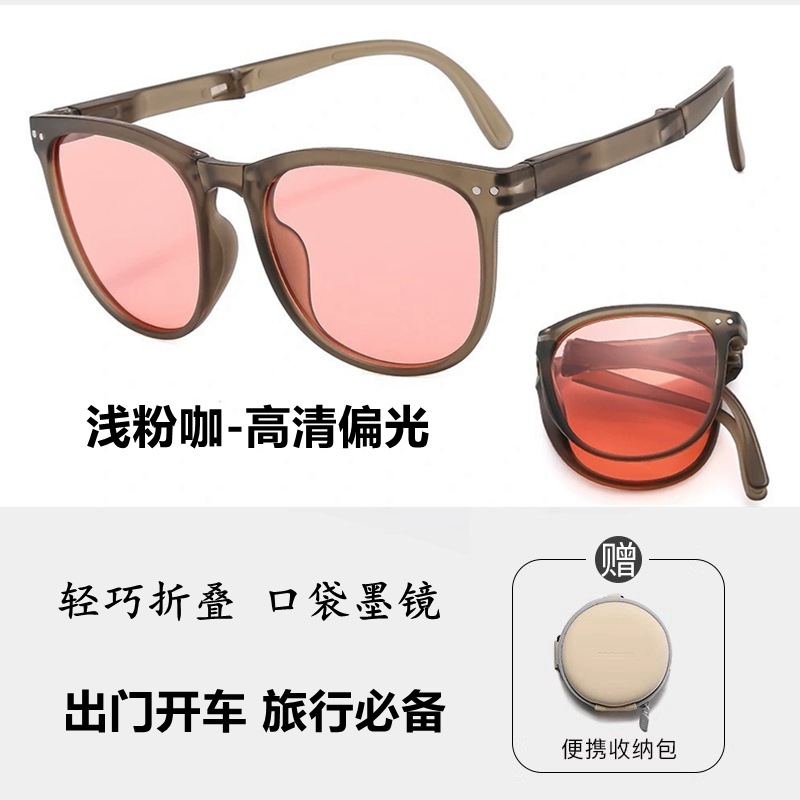 generation folding light pink coffee-hd polarized lens [portable round bag]]
