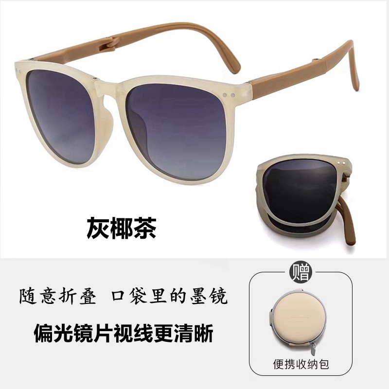 generation folding gray tea-hd polarized lens [portable round bag]]