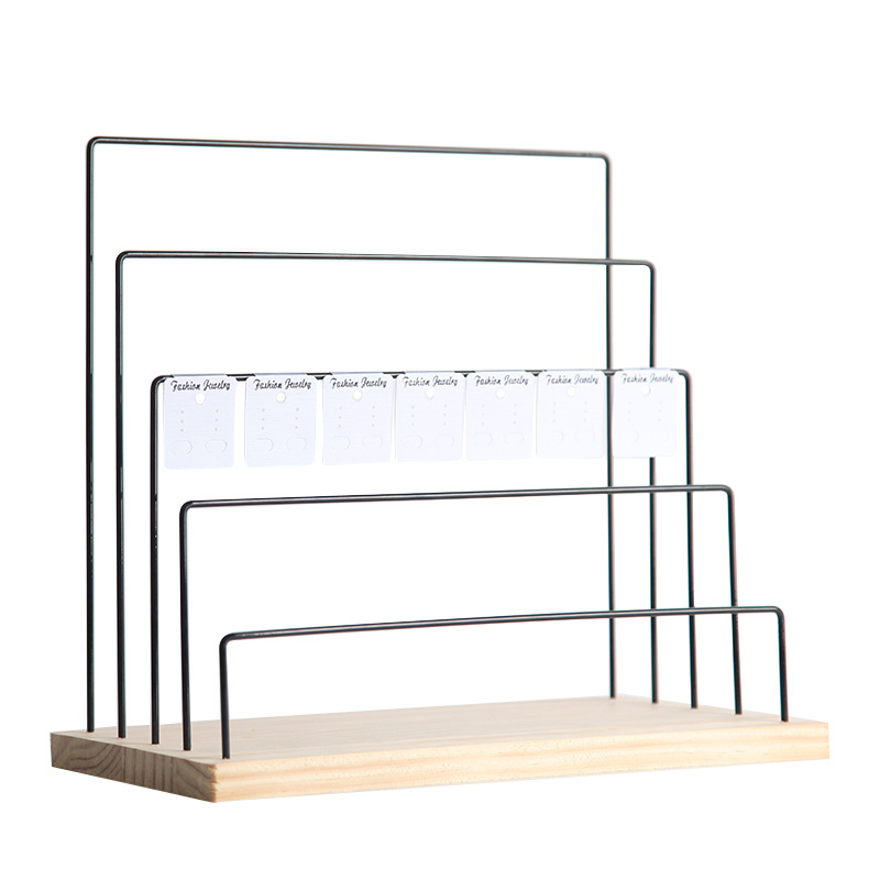 solid wood ladder earring rack three-layer black (4.0 iron wire)