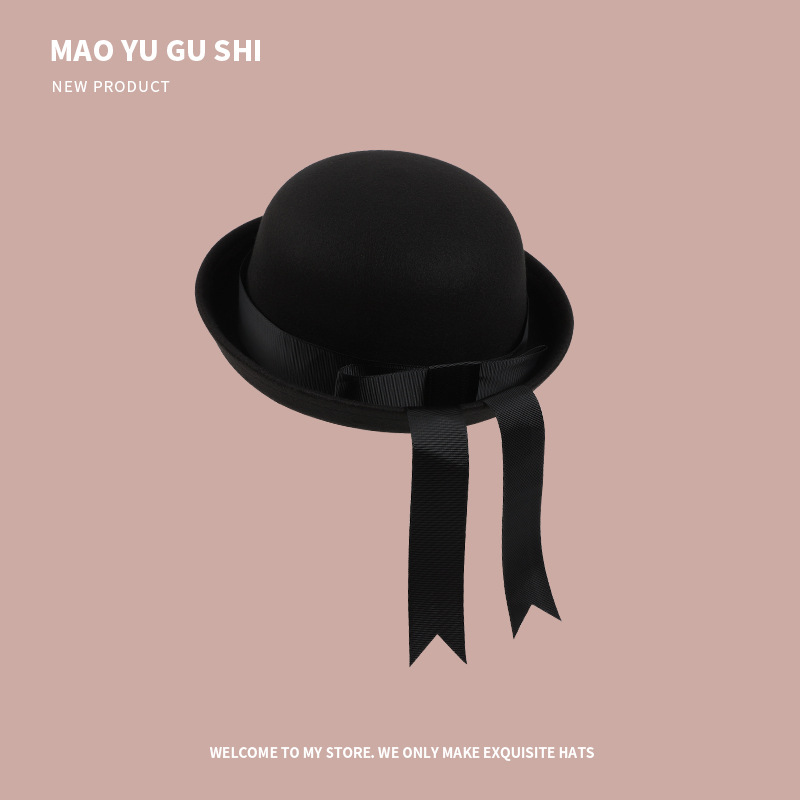 [round cap] black + black ribbon bow