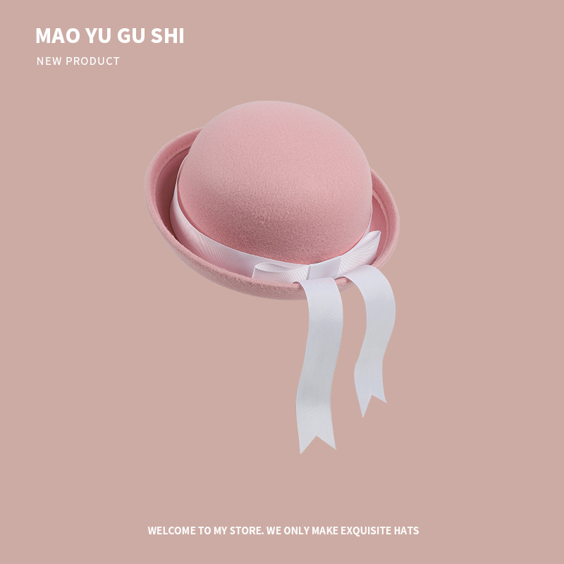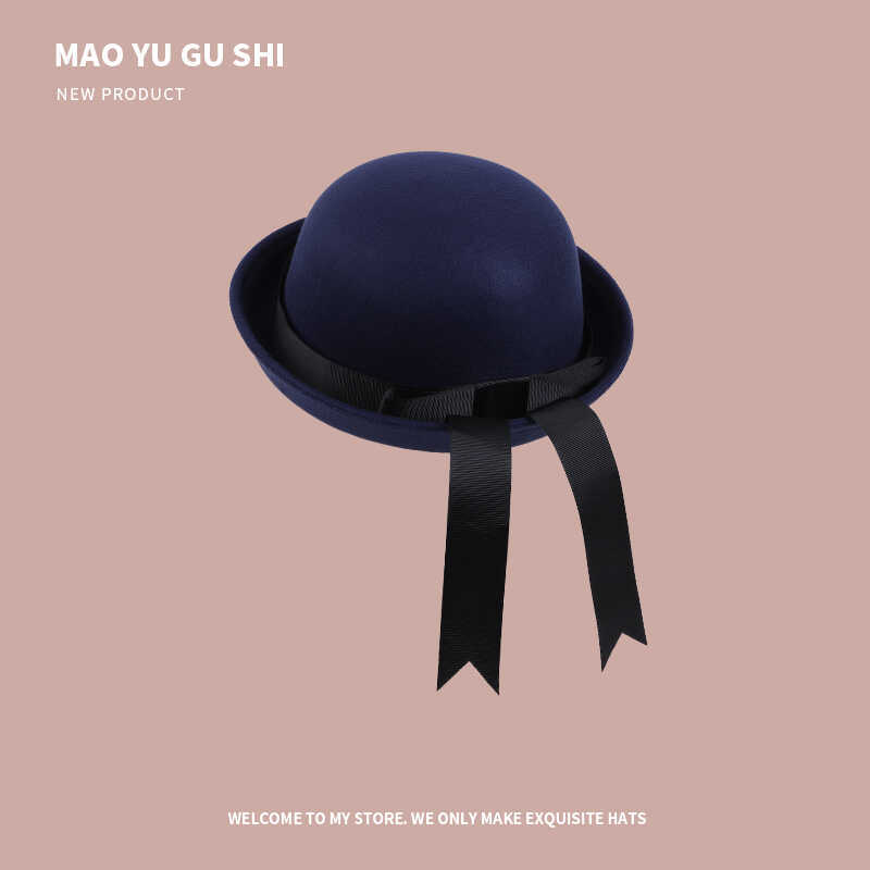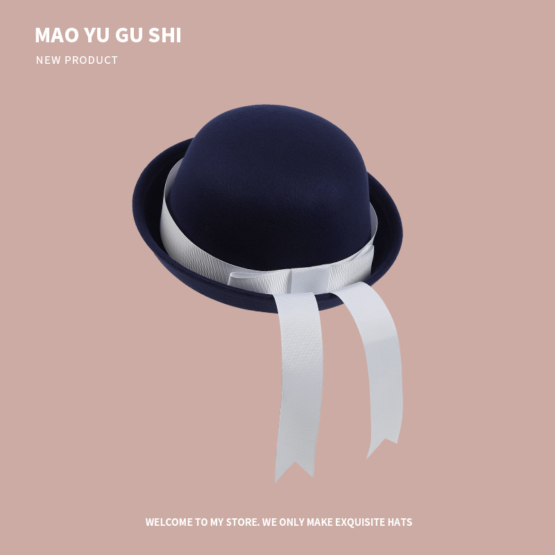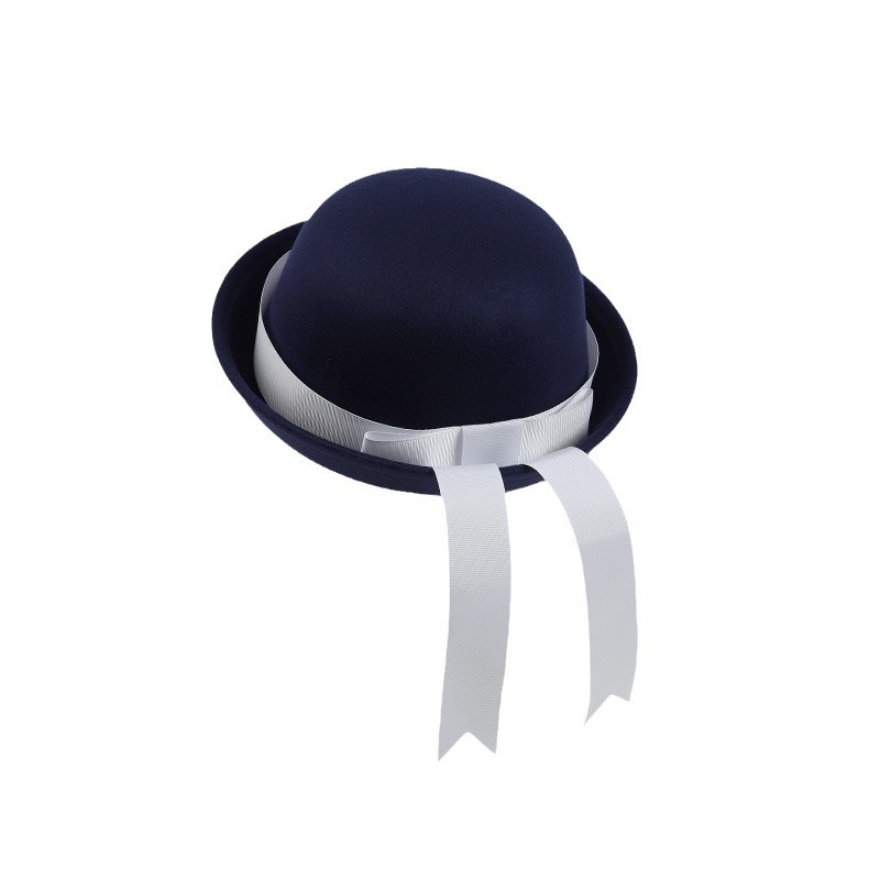 [round cap] navy blue + navy blue ribbon bow