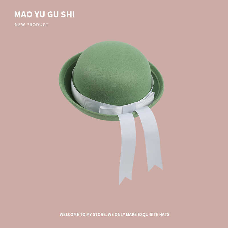 [round cap] fruit green + white ribbon bow