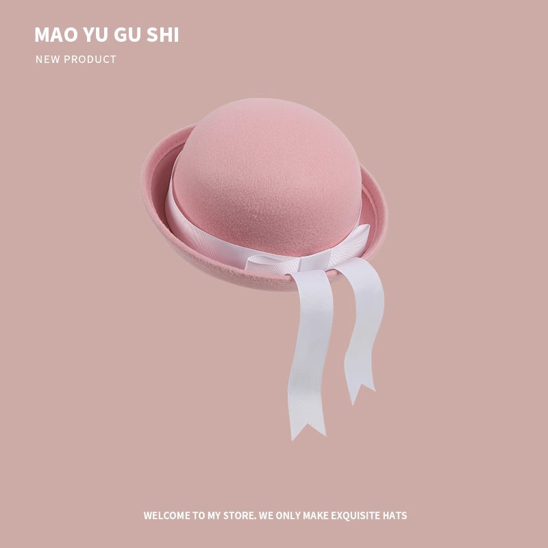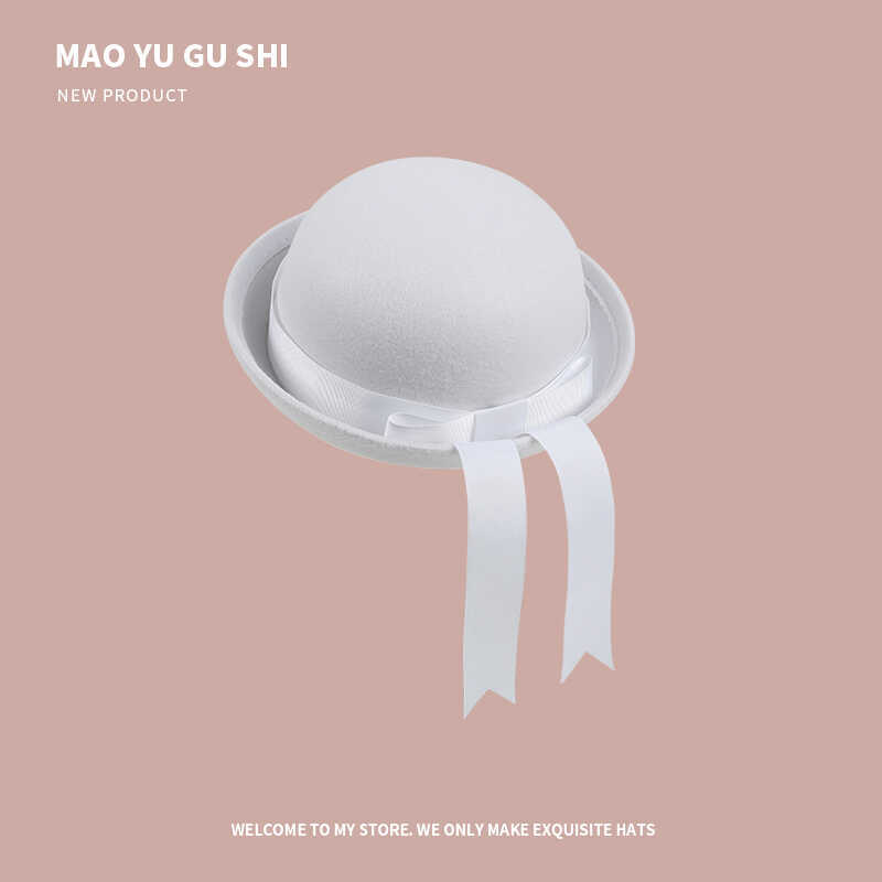 [round cap] white + white ribbon bow
