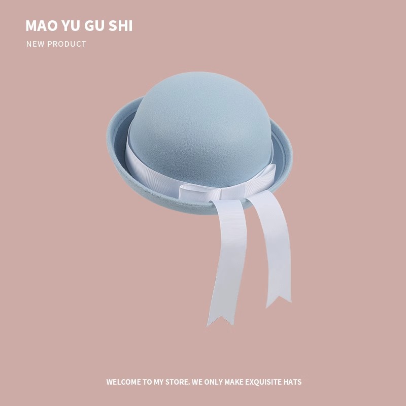[round cap] sky blue + white ribbon bow