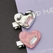 clip 4cm long diamond love heart silver