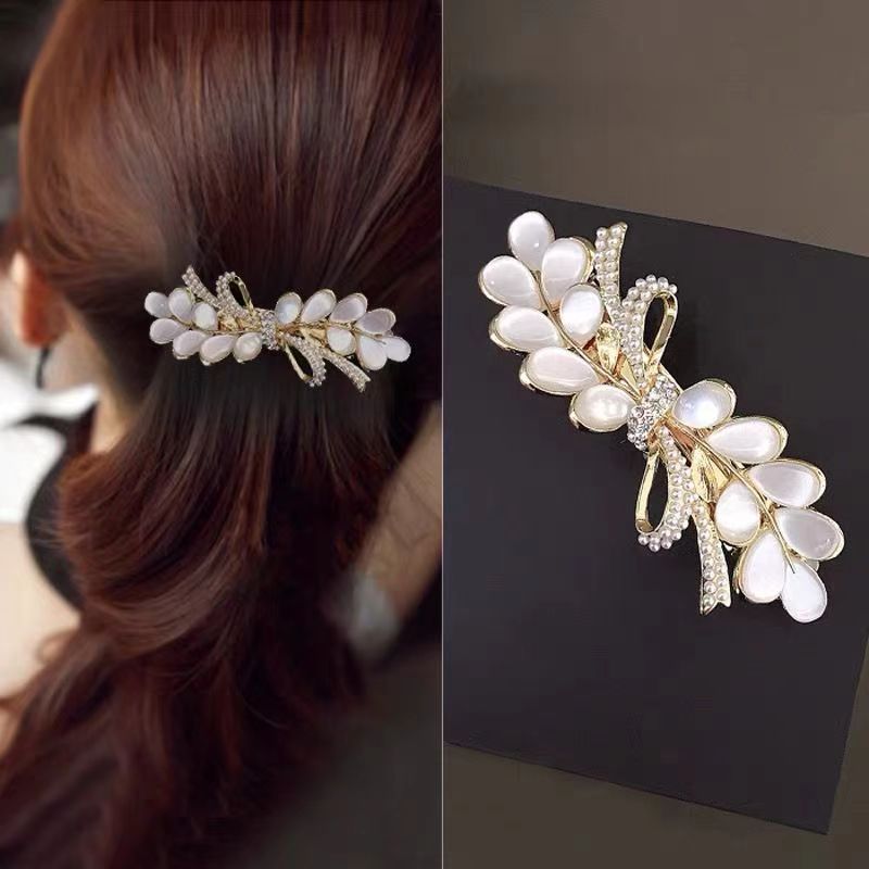pearl imitation cat's eye bow large spring clip