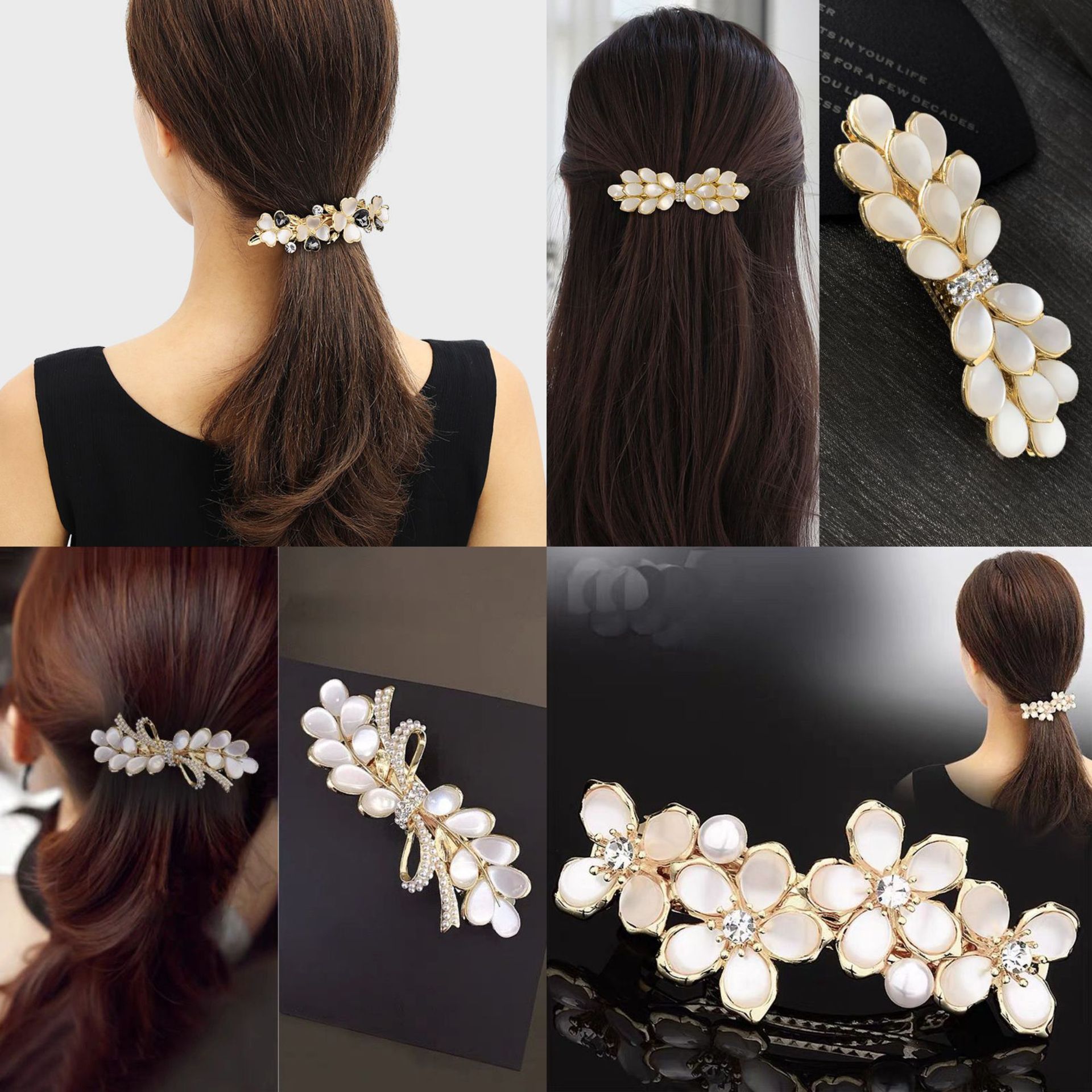 four flowers imitation cat's eye large spring clip
