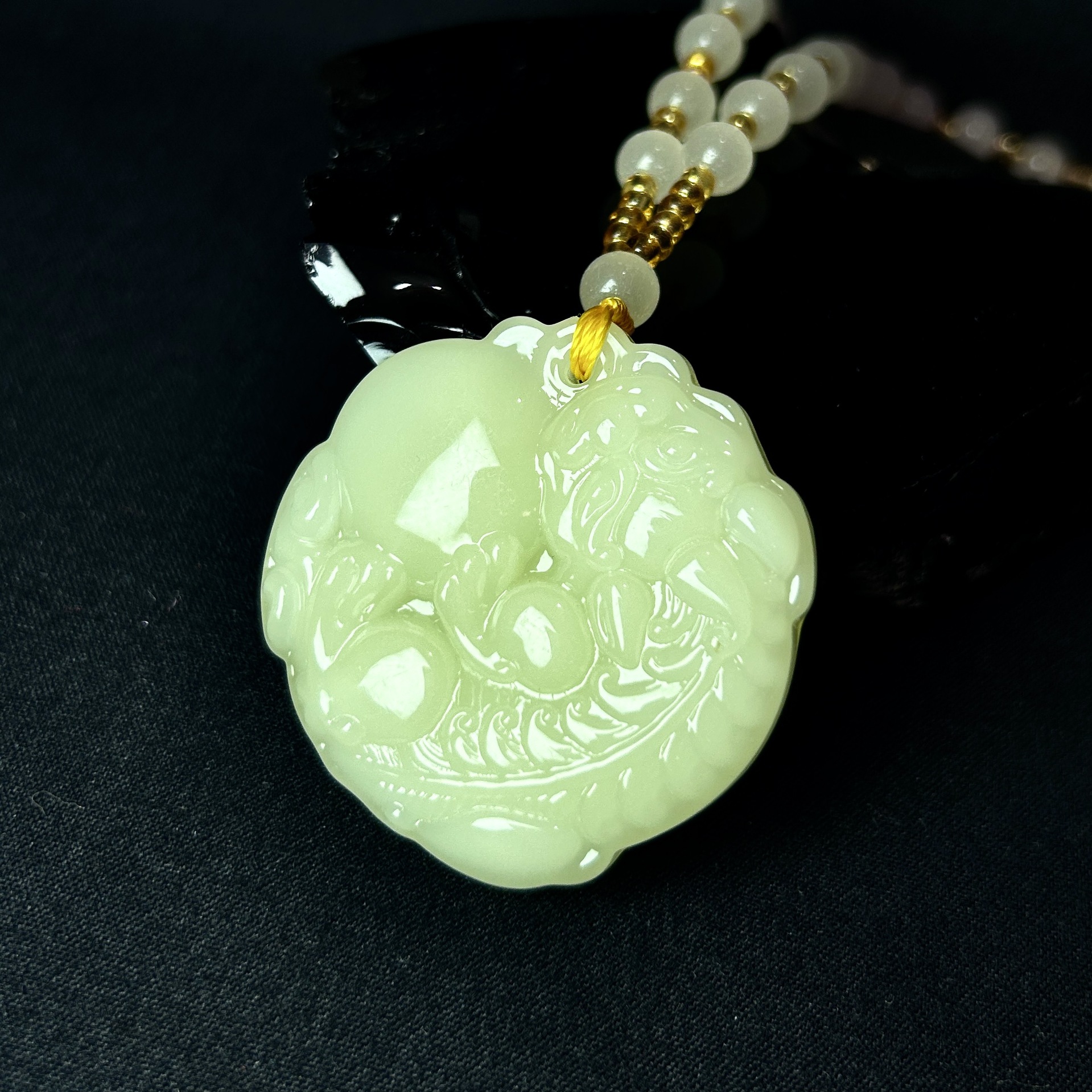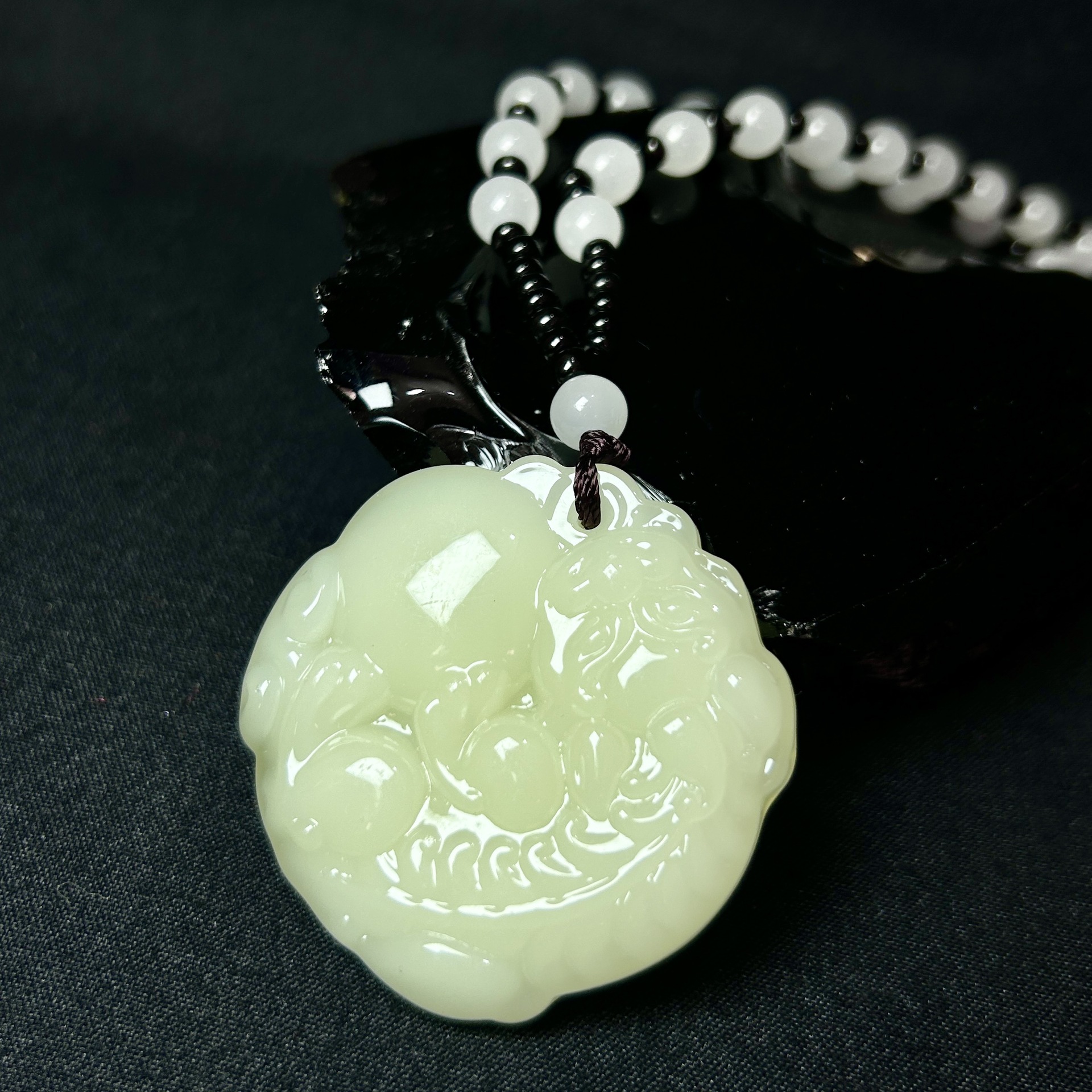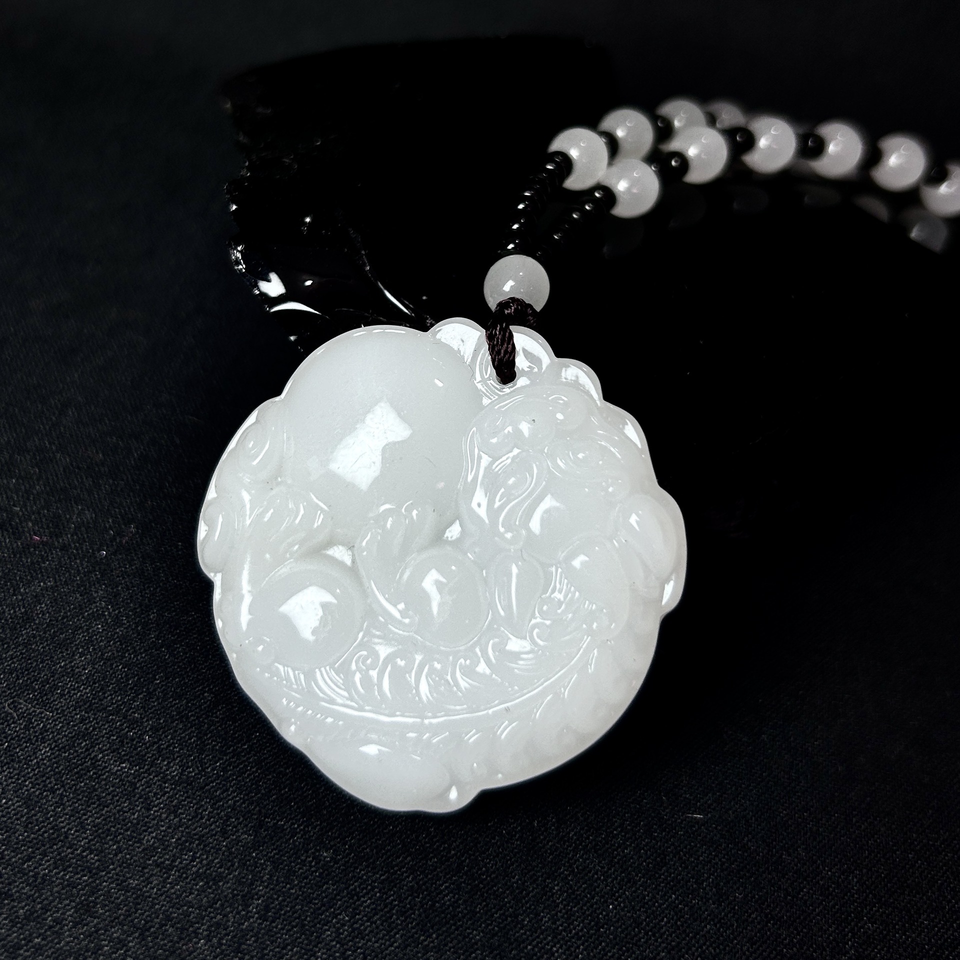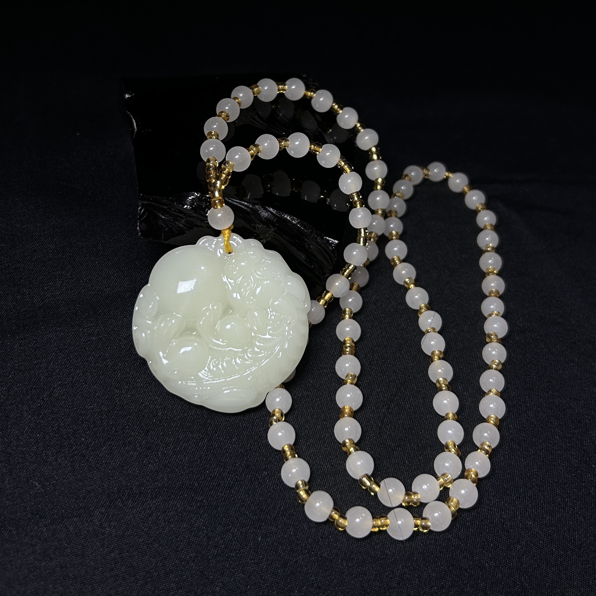 warm white beads-black and white chain beads